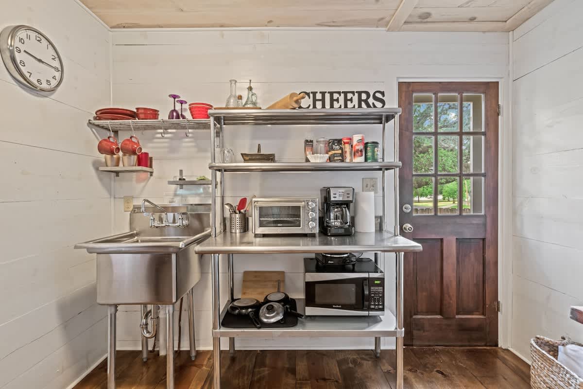 One of the highlights of this property is the beautiful outdoor space. Each suite has its own private hot tub where you can indulge in relaxation and soak away the day's cares. The shared patio provides a delightful area for outdoor dining, sipping wine, or simply enjoying the fresh air. As the day turns into night, gather around the cozy fireplace area under the starry Texas skies to share stories and laughter with your loved ones.