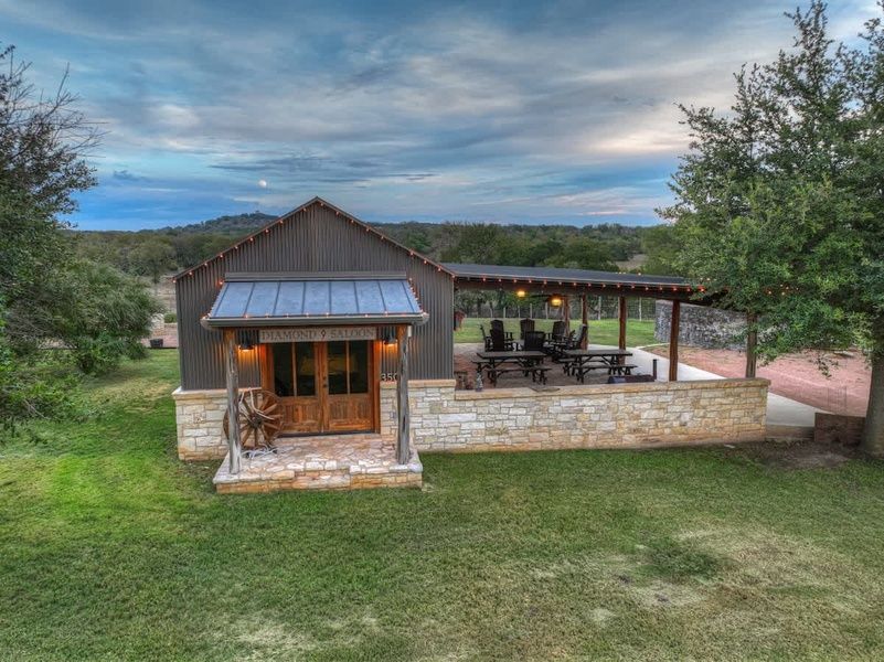 The outdoor shared space is designed for fun and relaxation for guests of all ages. It includes a playscape for children, a pavilion that offers a shaded retreat, making it an ideal spot for outdoor gatherings and picnics. Adjacent to the pavilion is "The Saloon," a fantastic recreational space equipped with a pool table, shuffleboard, a chess table, and more. The Saloon is perfect for friendly competitions, game nights, and socializing.