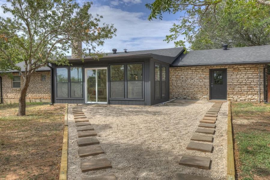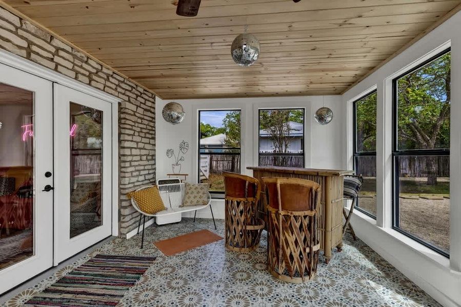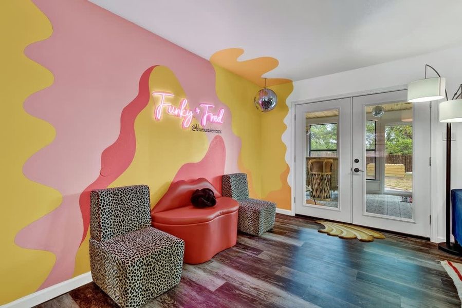 Bright vibrant colors greet you as you step inside the doorway to this spacious 3 bedroom/2 bath home. Down the hallway you can feel the fun funky vibe from the designs on the wall and the leopard print carpet leading you to each of the bedrooms and baths. As you walk into the living room the “Funky Fred” selfie wall will catch your eye and will be your group's favorite spot to capture memories that you will treasure forever. Step into the kitchen which is well equipped with everything you will need to cook up a meal or a few snacks for everyone to enjoy. As the sun comes up the sunroom with its oversized windows is the perfect place to gather with morning coffee and plan where to start your fun day of exploring Fredericksburg. Once you get back to the house after a long enjoyable day on the town, grab a glass of wine and head out to the hot tub under the pergola in the backyard and soak up the night sky, you will have plenty of privacy as the yard backs up to a wet weather creek. Blue Succulent Haus is going to be your go to spot when you come and visit Fredericksburg over and over again!