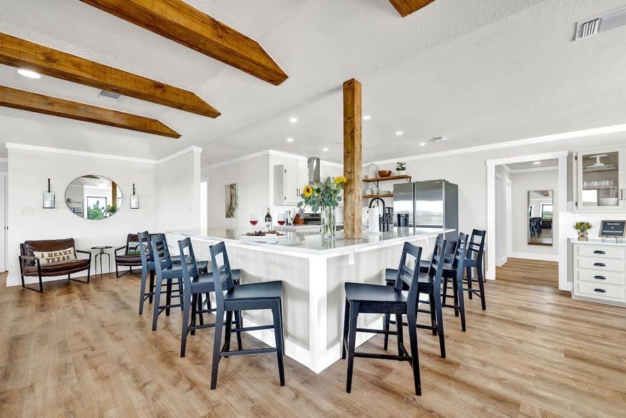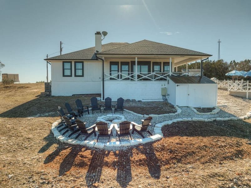 This stunning and freshly remodeled home is nestled right on a hilltop overlooking breathtaking canyons and views. It is only located 2 miles from the heart of downtown Fredericksburg. This luxury retreat and oasis sits on 4 beautiful acres and boasts 5 bedrooms and 4 bathrooms. 4 bedrooms have a luxurious and cozy king bed, and 1 has two luxurious and cozy queen beds. You'll love the open concept living, stunning views, exceptional indoor and outdoor dining spaces, a new kitchen with brand new appliances, 75 Inch TV and surround sound system by Polk premium audio, and a pool table, making this home perfect for entertaining and socializing for large groups and families. The kitchen comes fully stocked with plate ware, flatware, serving platters, glassware including wine and whiskey glasses galore, and other little necessities for those wishing to dine in.