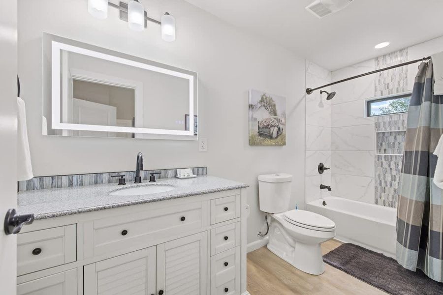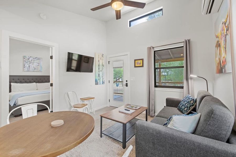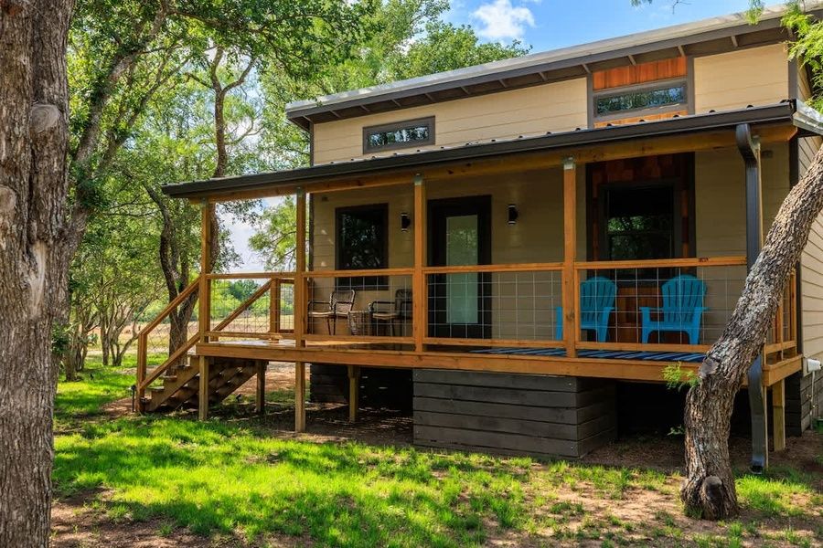 Embrace tranquility at this designer waterfront cottage, an oasis for relaxation in Fredericksburg. Enjoy the allure of vaulted ceilings and a spacious front porch. The convenient kitchenette, equipped with a full-size fridge, sink, microwave, Keurig, countertop skillet, and toaster, caters to your needs. Unwind in the expansive yard furnished with hammocks and swings, perfect for ultimate relaxation by the water's edge. Nestled amidst the serene landscapes of the Texas Hill Country and situated along the banks of the spring-fed Pedernales River, this charming property offers a serene and picturesque retreat. Winecup is one of six cottages on the property, featuring vaulted ceilings, the spacious interior complements the expansive feel of the space. As you approach, a large front porch greets you, providing a welcoming spot to unwind and enjoy the tranquility of the surroundings. Inside, a well-equipped kitchenette awaits, offering the convenience of preparing meals during your stay. The accommodation is adorned with a king-sized bed, inviting you to relax in comfort. Additionally, a queen sleeper sofa provides extra sleeping arrangements, making this retreat suitable for additional guests. The cozy living room invites you to kick back and unwind after a day of exploration. The property's prime location along the Pedernales River offers an array of activities for guests to enjoy. Launch a kayak or water float to embark on a leisurely journey along the river's tranquil waters. Take time to explore the scenic riverside walking trails, winding through natural landscapes carved out by local wildlife, offering a peaceful connection with nature. Dotted with hammocks and swings, this waterfront oasis is surrounded by neighboring ranches boasting picturesque horses, goats, sheep, donkeys, and llamas, adding to the charm of the setting. For group gatherings, a large covered pavilion beckons, complete with comfortable furnishings, a convenient bathroom, and even a backdrop wall designed for capturing memorable photos, perfect for social media sharing. As evening descends, gather around the firepits for an unforgettable stargazing experience beneath the expansive Texas skies, creating cherished moments and lasting memories in this serene and scenic setting. Great news for pet lovers! This property is pet-friendly, so you can bring your furry friends along for the adventure. We want everyone to enjoy their stay, including your four-legged family members. To ensure a paw-sitive experience please be aware of the following: Pet fees & rules: We're delighted to welcome furry friends! This property is pet-friendly for 2 dogs, unfortunately we can't accommodate cats at this time. -Pet fee(s) of $75+tax will apply in addition to the nightly rate. -Maximum of two dogs allowed with a combined maximum weight of 50 lbs. -Please keep your pups leashed outside and clean up after them. -A separate pet waiver must be signed. -Any and all damages or issues caused by your pet to a unit or furnishing will be immediately charged to your credit card on file. Easy Check-In Process We use Happy Guest for a seamless, app-free check-in experience. Just complete your rental agreement, ID verification, and a simple refundable security hold of $1,000 (which is not a traditional security deposit, just a pending transaction) to receive your arrival instructions. If you'd prefer, you can opt for a Non-Refundable Damage Waiver instead, which provides coverage up to $1,500. The waiver is $53 for stays up to 10 nights, with an additional $1.50 per day for stays longer than 10 nights. It’s simple: finish these steps, and you’re all set to enjoy your stay! Note: arrival info won’t be sent without completing these steps, and refunds aren’t possible if skipped. Happy Guest is web-based and user-friendly, with all the info about the house and local spots. You can even share it with friends and family. Got questions? Just message us anytime! Stay Texas has engaged VacayHome to ensure this listing contains all the information you need and that it is easy for you to book via search engines & online channels. VacayHome is connected directly to the property management system used by Stay Texas which ensures that availability & rates are up-to-date & accurate. When you book, VacayHome processes payment on behalf of Stay Texas and a charge will appear on your statement as "VacayHome". VacayHome will send you a confirmation e-mail that contains all the information you need to prepare for your vacation including arrival instructions. VacayHome has a 24 x 7 team to assist you with any questions or concerns you may have prior to arrival. To access VacayHome, obtain the customer support telephone number or read FAQs, please click on the links at the bottom of this page.