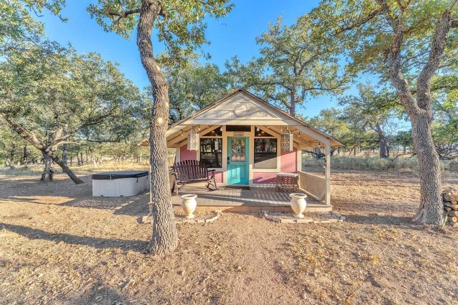 Outdoors, let nature be your companion. Watch the sunrise or a stunning Texas sunset from the front porch rocker, or end your day stargazing in the soothing warmth of the hot tub. (Please note the hot-tub sits right next to the cabin and is not fenced so it is visible from the other cabins)