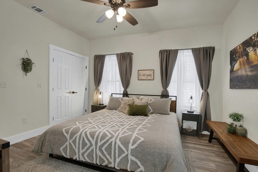 At the end of the night, when your eyelids start to droop, each of the bedrooms offers hotel-quality luxurious bedding and the latest in mattress technology, that provides an exceptionally restful night of sleep. Lay your head back and let yourself drift off to sleep, in preparation for yet another great day in Fredericksburg!