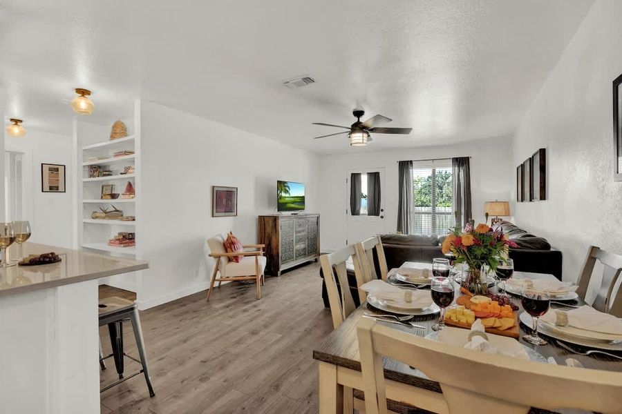 Welcome to the Wanderlust! This gorgeous four-plex home is a Fredericksburg luxury destination that has been decorated with an eclectic mix of photography and artifacts from Africa and Central Asia. This beautiful home is just a few minutes away from Main Street, making it the perfect location to enjoy the lively and historic downtown Fredericksburg! This modern home is located in a stunning property with a beautiful shared outdoor courtyard.