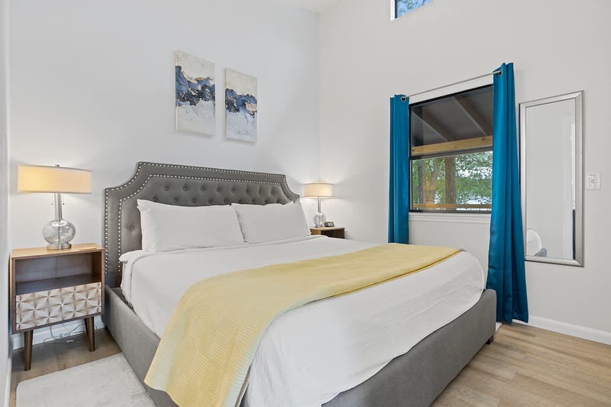 Bask in tranquility at this light and bright designer waterfront cottage, an idyllic haven for relaxation in Fredericksburg. Revel in vaulted ceilings and a spacious front porch. The convenient kitchenette offers a full-size fridge, sink, microwave, Keurig, countertop skillet, and toaster. Unwind in the expansive yard furnished with hammocks and swings, providing the ultimate space for relaxation by the water's edge.