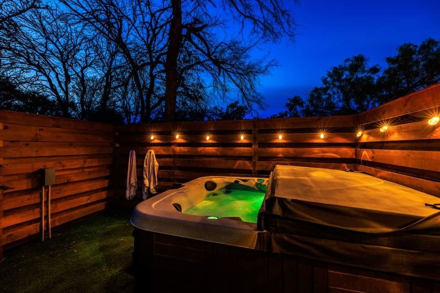 As evening descends, firepits around the property offer an ideal setting for stargazing under the vast Texas skies, creating a magical atmosphere for relaxation and connection with nature.