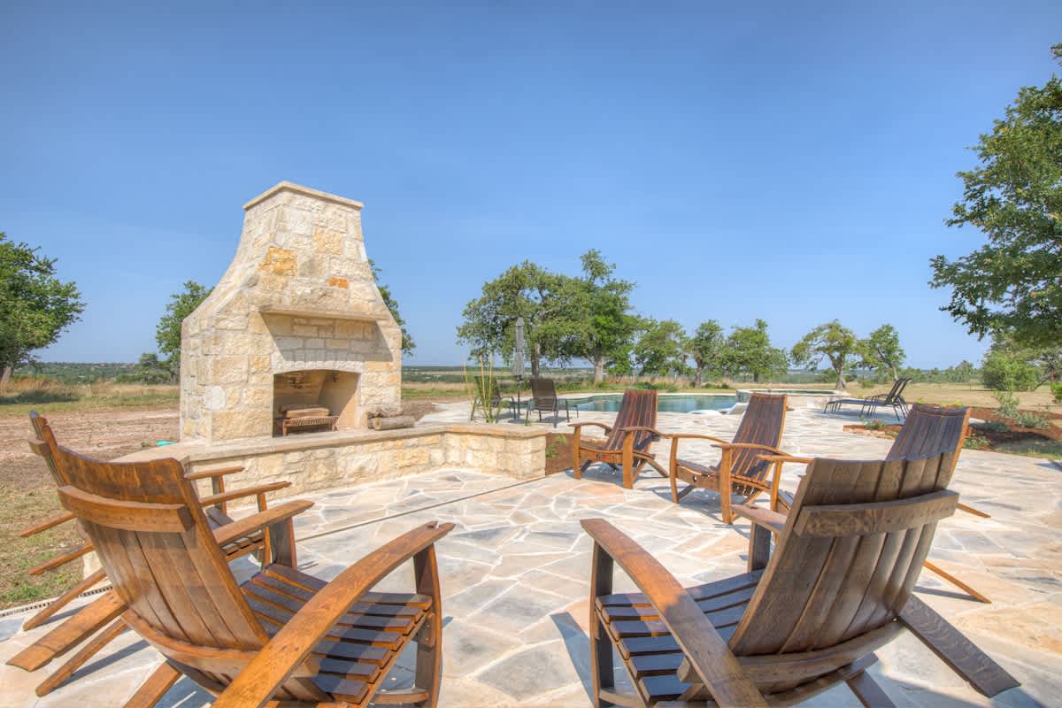 This picturesque, private combo has five bedrooms with three king beds and two queen beds, four bathrooms, a full-sized outdoor pool bathroom, a gourmet kitchen, a dining space, a living room, and an outdoor kitchen. Additionally, this combo includes a wine fridge and wet bar, a gorgeous grilling area, and an outdoor bar, perfect for entertaining a large group, while soaking in breathtaking views of The Texas Hill Country.