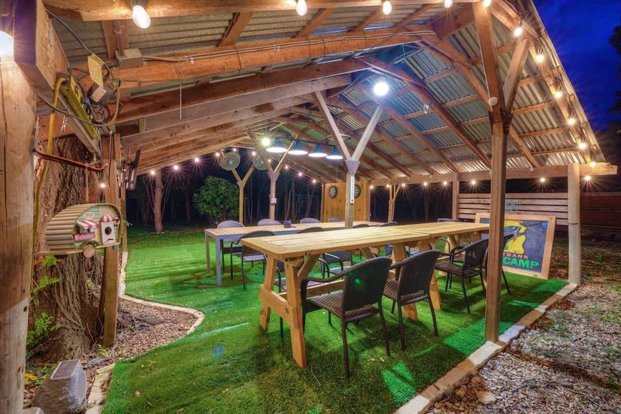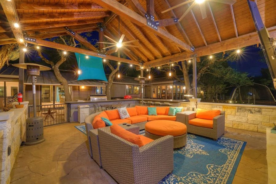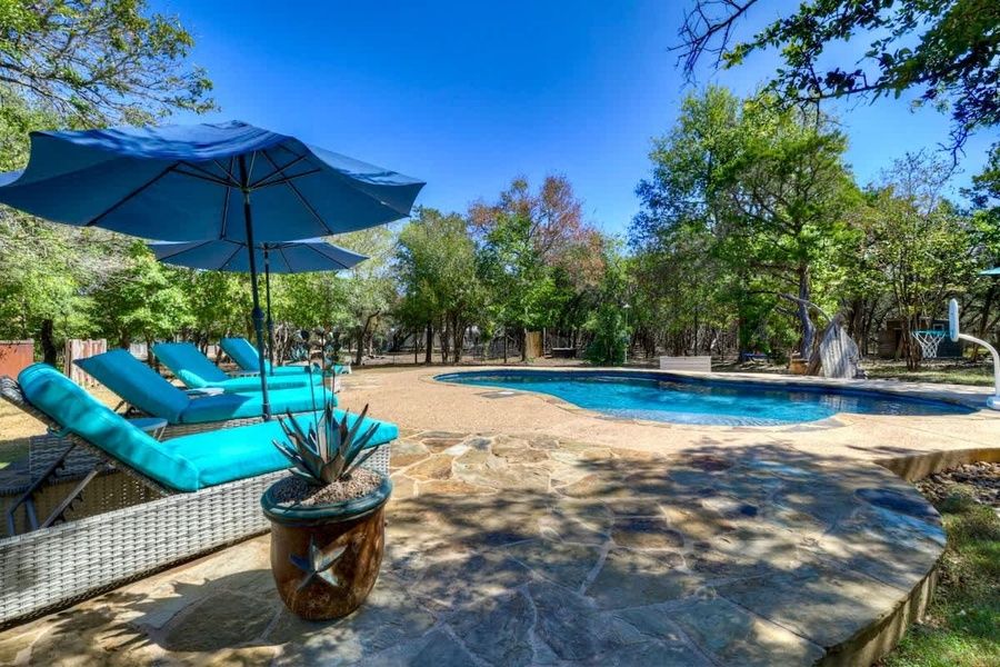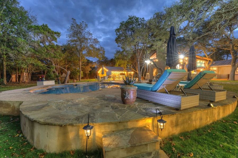 Located in the Texas Hill Country, Terracotta Retreat is perfect for a group of up to 30 guests. This stunning property provides 5 separate accommodations in a peaceful oasis for visitors to relax and unwind. Five miles from downtown Wimberley, guests can easily access the area's lively attractions and historic landmarks. With its gorgeous surroundings and top-notch amenities, Terracotta Retreat is the perfect getaway for those seeking a luxurious and serene vacation experience. Casa Terracotta, a generous three-bedroom abode, comfortably hosts up to 8 guests. Its chef-inspired kitchen boasts premium stainless steel appliances, featuring a six-burner gas stove, oven, microwave, and refrigerator. The unique dining table sets the stage for delightful family meals, complemented by convenient bar seating options. The expansive butler pantry impresses with its generous countertop space, accommodating various tasks seamlessly. Guests benefit from a secondary fridge and the added convenience of a washer and dryer, enhancing their stay and ensuring utmost comfort. The master bedroom embodies luxury with a king-sized bed, a fold-out queen sleeper sofa in the sitting area, a flat screen smart TV, and an opulent en-suite bathroom. The bathroom features a spacious shower with multiple shower heads and a separate soaking jacuzzi tub for ultimate relaxation. The expansive walk-in closet provides ample storage, and a smart TV and gas fireplace create a cozy ambiance visible from both the bathroom and bedroom. A small desk workspace, dual sinks, and a bidet complete this tranquil oasis of comfort and style. The second bedroom offers a king-sized bed and a Smart TV, accompanied by a convenient doggy door leading to a secure area for the pups, while the third bedroom provides a queen-sized bed and its own Smart TV—creating inviting and tailored spaces for all. In addition, the living room has a queen-sized sofa pullout, providing additional sleeping space for guests. Casa Pennington is a spacious retreat with a restful king-sized bed and an adjoining sitting area featuring a flat-screen Smart TV. The kitchenette provides essential amenities, including a compact fridge, toaster, Keurig coffee maker, and microwave, ensuring convenience and ease for your culinary needs. Additionally, the casa boasts a full bathroom with a shower, ensuring a comfortable and enjoyable stay. Casa Coop, a playful retreat, accommodates an extra 6 guests with a Queen over Queen bunk bed and a Queen sleeper sofa, making it ideal for kids and the young at heart. This vibrant space is perfect for gaming or fixing a snack with a convenient kitchenette equipped with a microwave and a compact mini fridge, adding to the excitement and enjoyment of the stay. Introducing Casa del Avion – a brand-new haven where an open-concept kitchen and living room beckon. Featuring three bedrooms and two bathrooms, this property can sleep 8. Entertainment takes center stage with a pool table and foosball, complemented by plush couches for relaxation. The kitchen boasts stainless steel appliances and bar seating. Casa Del Sol is a unique Quonset-style cabin that can sleep four people. The industrial-style kitchen is equipped with a stove, refrigerator, and Keurig coffee maker. The bedroom features a king-sized bed and a queen sleeper sofa for maximum comfort. The bathroom has a large walk-in shower, and there is a sitting area outside with a gas grill. The outdoor oasis is the perfect place to relax and unwind. Guests can cool off or play a game of basketball in the outdoor pool, take a break and bathe in the sun on the patio loungers. The main patio features a large sectional couch, which is perfect for watching weekend games on the 60-inch flat-screen Smart TV. The state-of-the-art outdoor kitchen boasts a 48-inch commercial-grade grill, boiling frying pot, and Red Diamond Kamodo smoker. On cooler nights, guests can light a fire or turn on the outdoor heaters to get some warmth and snuggle in. The six-person hot tub is the perfect place to enjoy a sunset and unwind. The additional covered seating area, called the Fish Camp, is perfect for dining al fresco and features a TV and dart boards. The spacious grass area is perfect for a game of cornhole with friends while the kids play in the hammock swing or the play structure. Overall, the properties on this premises are designed with guest comfort and relaxation in mind. The fit and finish of each property are of high quality, ensuring a memorable stay for guests. Stay Texas has engaged VacayHome to ensure this listing contains all the information you need and that it is easy for you to book via search engines & online channels. VacayHome is connected directly to the property management system used by Stay Texas which ensures that availability & rates are up-to-date & accurate. When you book, VacayHome processes payment on behalf of Stay Texas and a charge will appear on your statement as "VacayHome". VacayHome will send you a confirmation e-mail that contains all the information you need to prepare for your vacation including arrival instructions. VacayHome has a 24 x 7 team to assist you with any questions or concerns you may have prior to arrival. To access VacayHome, obtain the customer support telephone number or read FAQs, please click on the links at the bottom of this page.