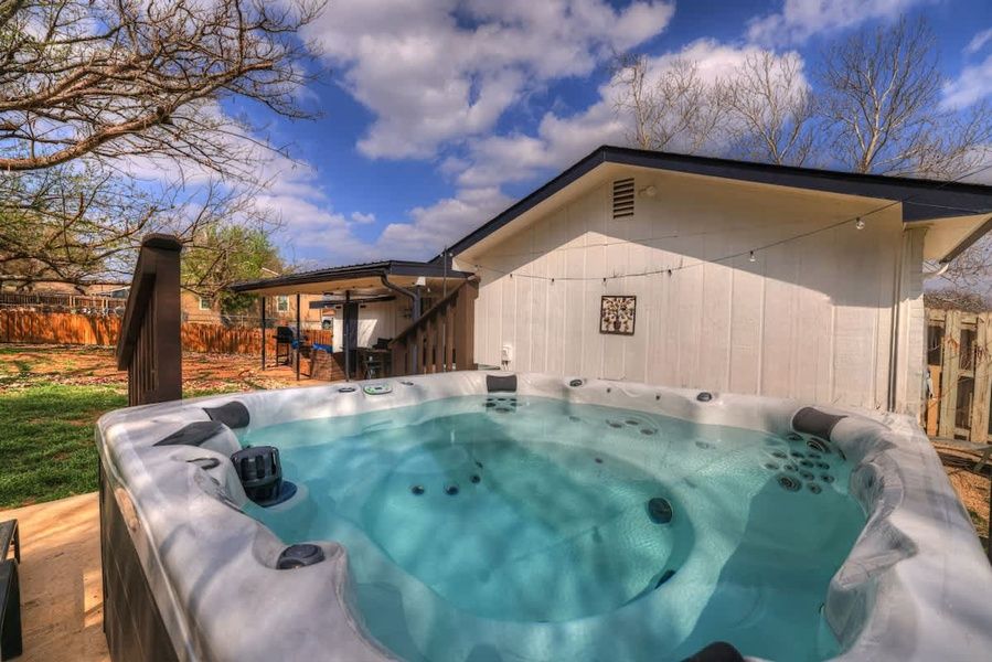 Escape to tranquility at Bayer Guest Haus! Nestled in a peaceful neighborhood, only 1.5 miles from historic downtown Fredericksburg. This spacious 4-bedroom retreat is the perfect balance of cozy and inviting to guarantee a home-away-from-home experience. The charming back patio is perfect for bonding with loved ones, sharing stories, and crafting everlasting memories. Whether in the hot tub or by the firepit, cherish moments of relaxation and delight. A memorable stay begins here!