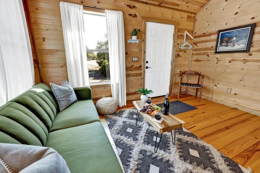 Enjoy the beauty of nature and the abundant wildlife while taking in the sunrise or sunset from the rocking chairs on the porch, and you can watch the stars at night in the relaxing hot tub. You can also access a fire pit shared with Mesquite Cabin, so grab the marshmallows and make some new friends.