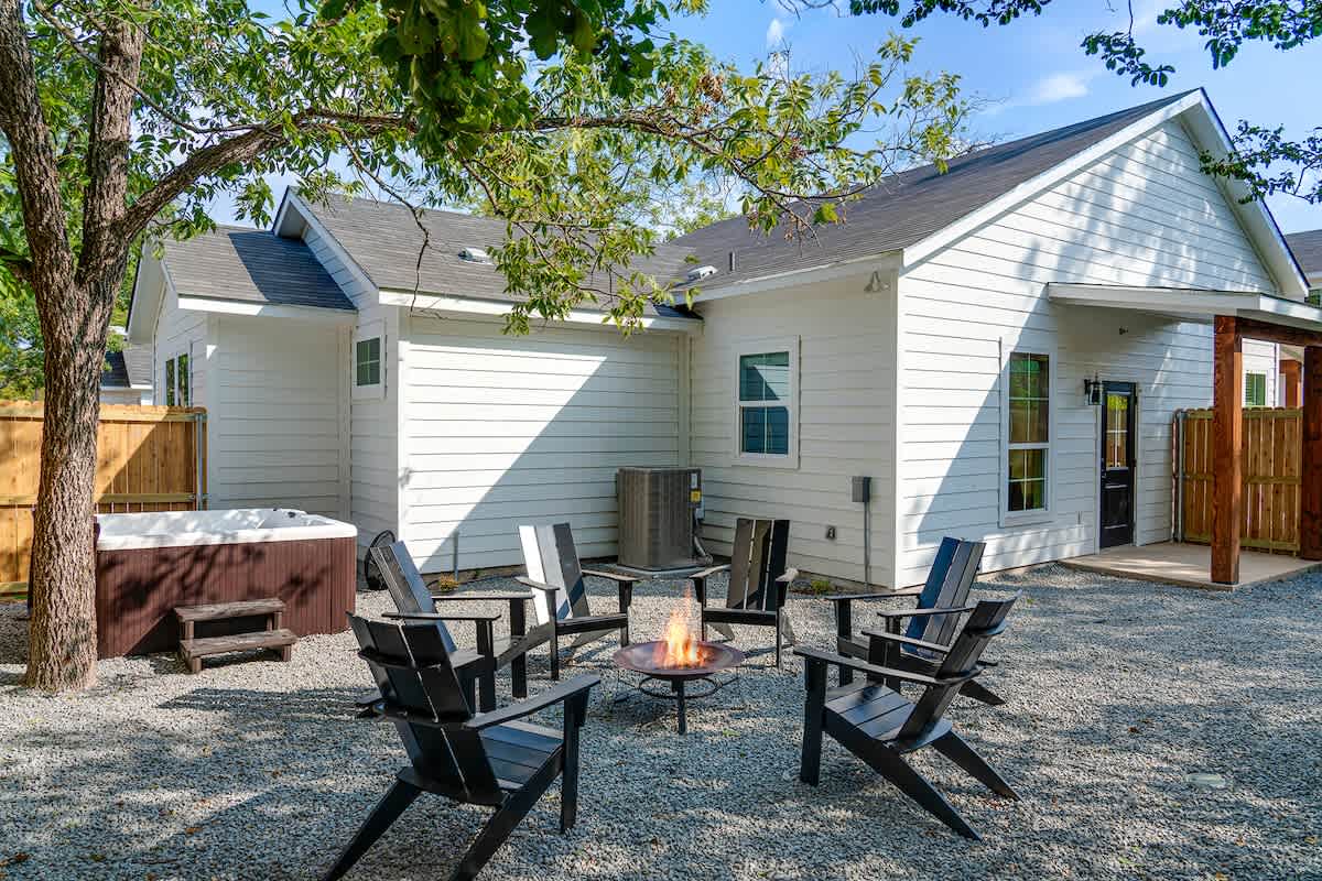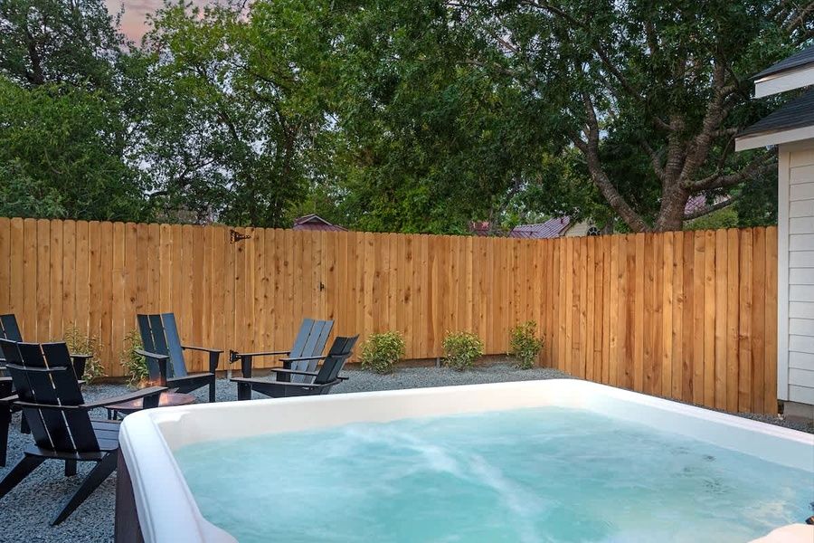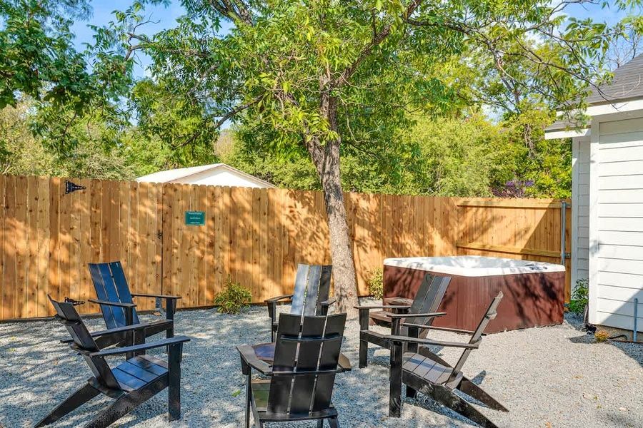 As you step outside, you'll discover a serene outdoor space where you can relax and unwind. Whether you're enjoying a morning coffee on the patio or basking in the sunshine, the peaceful atmosphere of The Malbec's surroundings invites you to immerse yourself in the beauty of nature. A charming firepit awaits, where you can gather around with your loved ones. Create lasting memories as you share stories, laughter, and enjoy the cozy ambiance of a the bubbling hot tub under the stars.