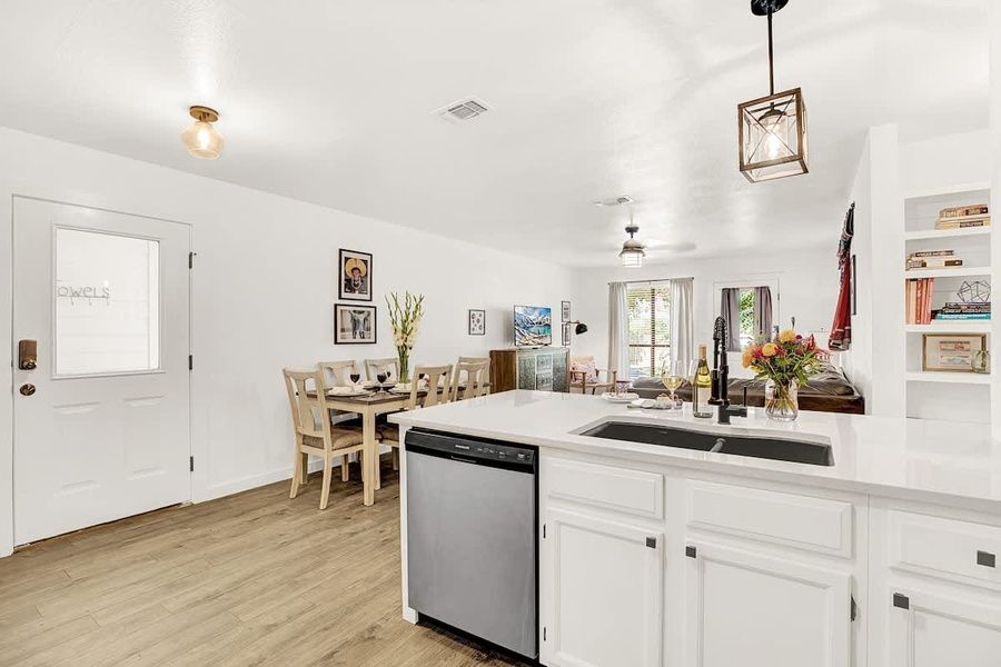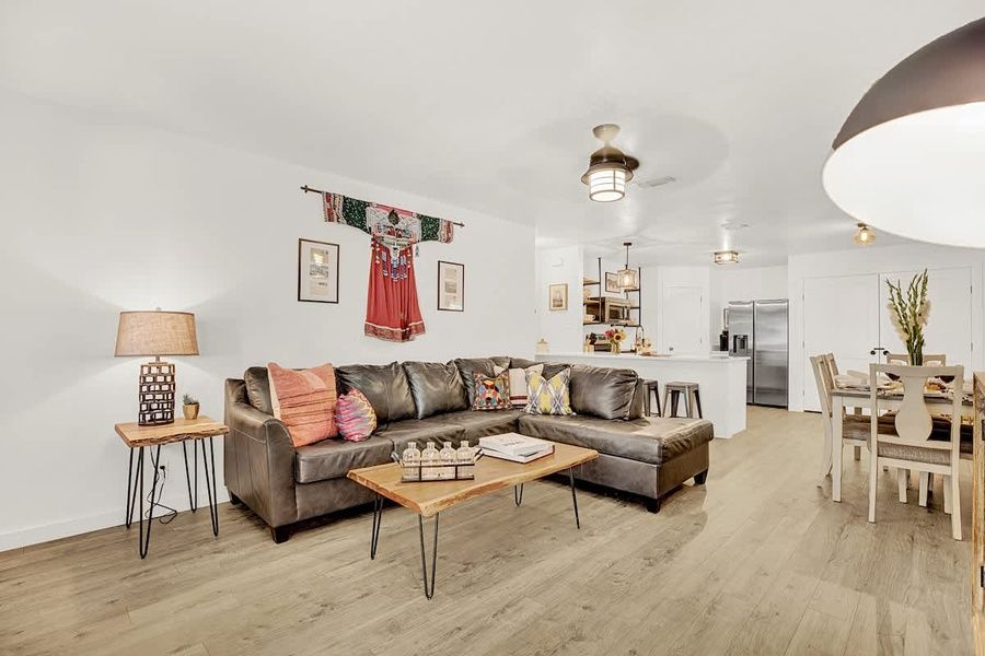 Welcome to the Wanderlust #1! This gorgeous four-plex home is a Fredericksburg luxury destination that has been decorated with an eclectic mix of photography and artifacts from Africa and Central Asia. This beautiful home is just a few minutes away from Main Street, making it the perfect location to enjoy the lively and historic downtown Fredericksburg! This modern home is located in a stunning property with a beautiful shared outdoor courtyard.