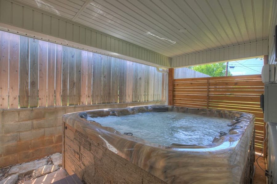 This stunning guest suite has two spacious bedrooms with king beds and two bathrooms, one of them being an ensuite private master bathroom. This beautiful guest suite comes with a big full kitchen, new appliances, an indoor dining space, and a living area. The suite is the best place for you and your loved ones to enjoy a family game night, enjoy the collection of travel books, or just a casual wine night to dream about your next adventure! At this home, you will enjoy an evening of relaxation in your own private hot tub or unwind and relax after a long day of exploring Fredericksburg with a glass of wine by one of the fantastic firepits in the courtyard. The Wanderlust has available for you excellent amenities located in the outdoor shared space, which as a charcoal grill, picnic tables, covered pavilion, and multiple fire pits.