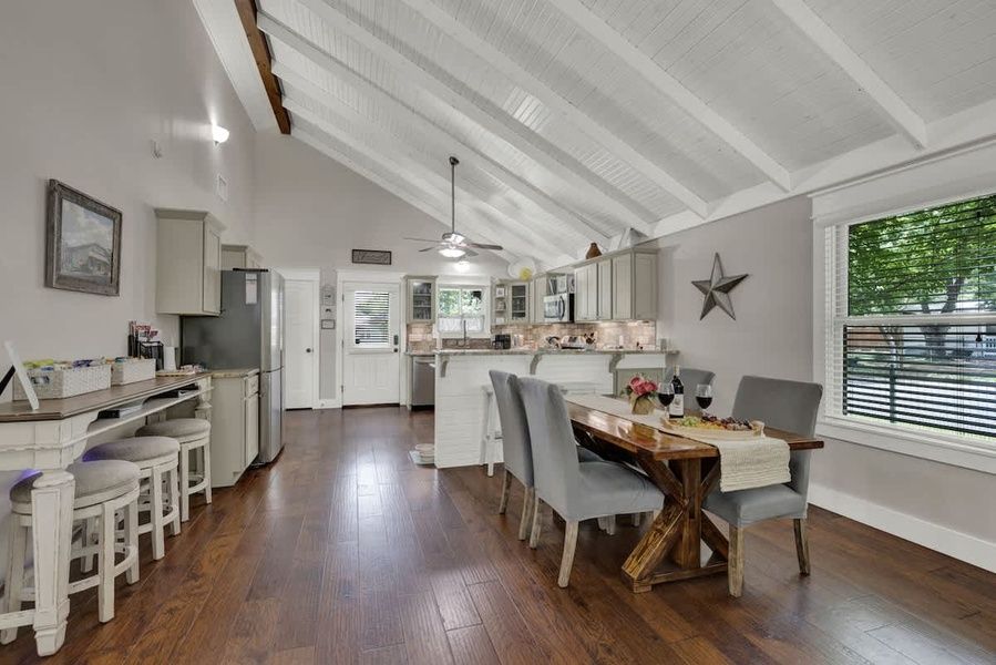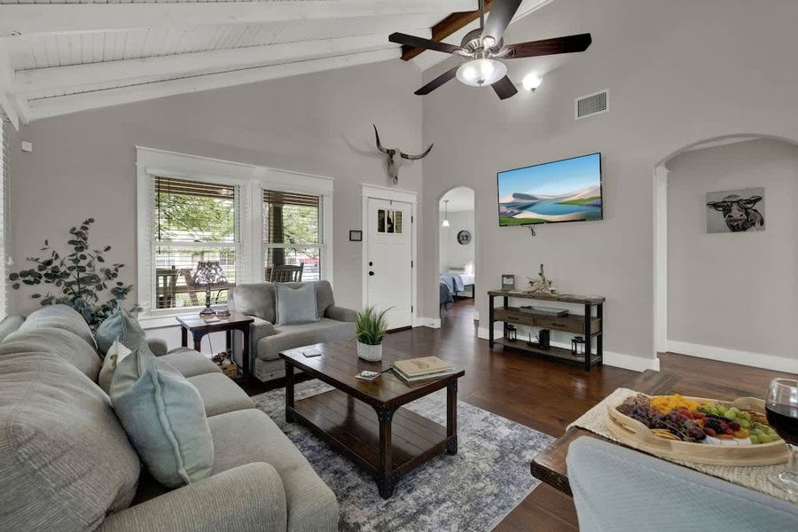 Welcome to Whitney Cottage, a charming 3-bedroom, 2-bathroom vacation retreat nestled in a peaceful neighborhood just one mile from Fredericksburg’s historic Marktplatz. Ideal for families, couples, or friends traveling together, this cozy hideaway combines modern comfort with Hill Country charm—and yes, your furry friends are welcome too! Step inside to find an inviting open-concept living and dining area that sets the tone for relaxation and togetherness. The fully stocked kitchen is a dream for anyone who enjoys cooking, featuring a gas stove, side-by-side refrigerator, microwave, dishwasher, toaster, and a Keurig coffee maker with both single-serve and full pot options. For outdoor dining, a BBQ grill is available to enjoy meals under the Texas sky. The home comfortably sleeps up to six guests across three thoughtfully appointed bedrooms: one with a king bed, one with a queen, and a third with two twin beds. The two bathrooms offer convenience and privacy—one with a stand-up shower and the other with a tub/shower combo. Entertainment options abound with a cabinet full of classic board games for all ages. Guests will also appreciate the washer and dryer for added convenience during longer stays. Enjoy your morning coffee or a glass of wine in the evening from the rocking chairs on either the front or back patio, perfect for soaking in the quiet surroundings. Located just one block from the renowned Herb Farm and Spa, and only a short drive to Main Street shopping, dining, and wineries, Whitney Cottage is a restful base for your Fredericksburg adventures. Whether you're exploring the Hill Country or simply enjoying a peaceful retreat, Whitney Cottage offers comfort, convenience, and plenty of Texas charm. Great news for pet lovers! This property is pet-friendly, so you can bring your furry friends along for the adventure. We want everyone to enjoy their stay, including your four-legged family members. To ensure a paw-sitive experience please be aware of the following: Pet fees & rules: We're delighted to welcome furry friends! This property is pet-friendly for dogs, unfortunately we can't accommodate cats at this time. -Pet fee(s) of $115 plus tax will apply in addition to the nightly rate. -Please check the weight limit and max number allowed for this unit. -Please keep your pups leashed outside and clean up after them. -A separate pet waiver must be signed. -Any and all damages or issues caused by your pet to a unit or furnishing will be immediately charged to your credit card on file. STR Permit Number #8056001575 House Rules and Things to Note: -No more than 6 occupants permitted -No Events or Parties are allowed -Place trash in designated receptacles -Observe City of Fredericksburg Quiet Hours - 10:00 PM to 7:00 AM -Parking instructions: Illegally parked vehicles are subject to tow -The City of Fredericksburg is a Dark Sky Community with outdoor lighting restrictions. All outdoor lighting is encouraged to be turned off when no one is present. Easy Check-in Process We use Happy Guest for a seamless, app-free check-in experience. Just complete your rental agreement, ID verification, and a simple refundable security hold of $1,000 (which is not a traditional security deposit, just a pending transaction) to receive your arrival instructions. If you'd prefer, you can opt for a Non-Refundable Damage Waiver instead, which provides coverage up to $1,500. The waiver is $62.54 for stays up to 10 nights, with an additional $1.50 per day for stays longer than 10 nights. It’s simple: finish these steps, and you’re all set to enjoy your stay! Note: arrival info won’t be sent without completing these steps, and refunds aren’t possible if skipped. Happy Guest is web-based and user-friendly, with all the info about the house and local spots. You can even share it with friends and family. Got questions? Just message us anytime! Stay Texas has engaged VacayHome to ensure this listing contains all the information you need and that it is easy for you to book via search engines & online channels. VacayHome is connected directly to the property management system used by Stay Texas which ensures that availability & rates are up-to-date & accurate. When you book, VacayHome processes payment on behalf of Stay Texas and a charge will appear on your statement as "VacayHome". VacayHome will send you a confirmation e-mail that contains all the information you need to prepare for your vacation including arrival instructions. VacayHome has a 24 x 7 team to assist you with any questions or concerns you may have prior to arrival. To access VacayHome, obtain the customer support telephone number or read FAQs, please click on the links at the bottom of this page.