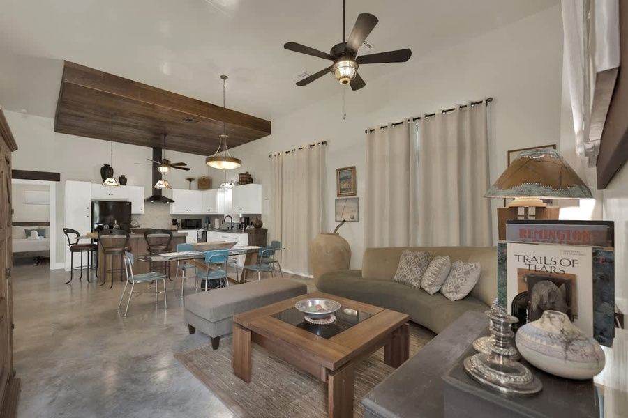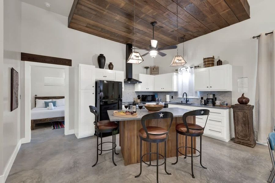 Just steps away, the converted garage has been transformed into two stylish king suites, (Rojo and Tejas) offering additional privacy and comfort for guests seeking a little more space.