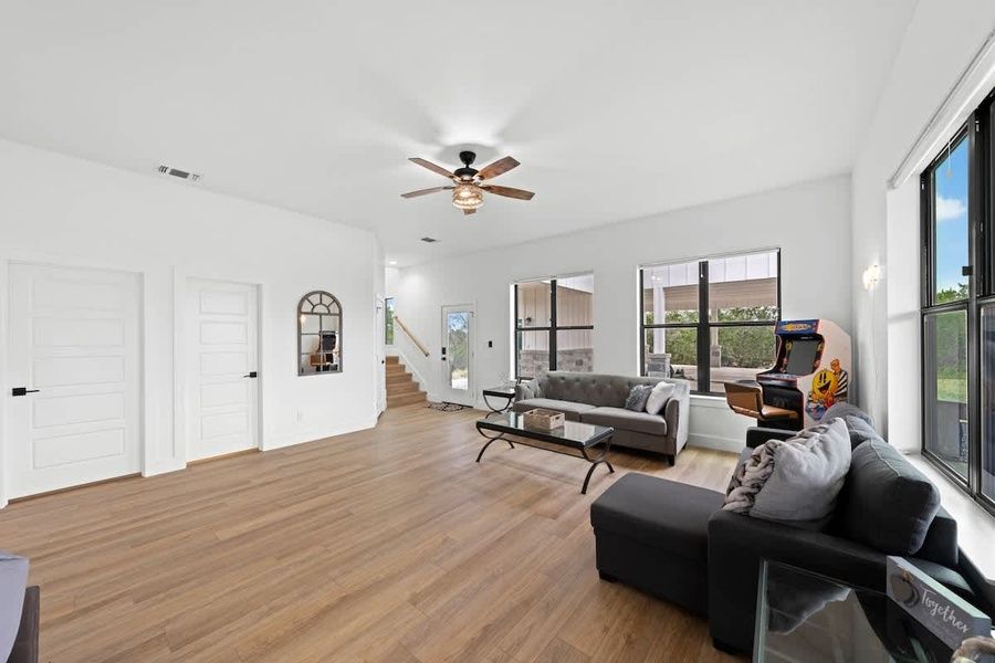 Escape to your own slice of Hill Country paradise—an inviting, newly built retreat set on 16.97 acres of private land with panoramic views and modern comforts. This serene escape is perfect for families, friends, and even your four-legged companions, offering the perfect blend of style, space, and seclusion. Step inside to discover an open-concept living area filled with natural light and designed with contemporary flair. Clean lines, sleek finishes, and thoughtfully curated décor create a warm yet sophisticated atmosphere. The spacious living room is ideal for gathering and relaxing, while the kitchen is fully equipped to meet all your culinary needs. Enjoy a large side-by-side refrigerator with water and ice dispenser, a convenient middle drawer and bottom freezer, a sleek flat-top electric stove, a farmhouse sink, and ample counter space with barstool seating for casual meals or morning coffee. Adjacent to the kitchen, the dining area features a stunning farmhouse-style table with a mix of chair and bench seating—perfect for group dinners, game nights, or sharing stories after a day of adventure. This home sleeps up to 10 guests across three comfortable bedrooms and a cozy loft. The primary bedroom boasts a king-size bed and restful ambiance. The second bedroom offers a plush queen bed, while the third bedroom features a charming twin trundle daybed—ideal for kids or solo travelers. Upstairs, the loft area includes a full-size bed that provides a quiet, tucked-away sleeping space. Two full bathrooms ensure everyone has room to refresh—one with a traditional tub/shower combo and the other with a spacious walk-in shower. Outside, immerse yourself in nature’s beauty. The large, open property offers peace and privacy, with space to relax or simply enjoy the views. Unwind in the private hot tub nestled under a covered area—an ideal spot for stargazing or a relaxing soak at the end of the day. And because no family vacation is complete without your furry friends, this home is pet-friendly, welcoming dogs to enjoy the adventure with you. Whether you’re sipping coffee at sunrise, soaking in the hot tub under the stars, or exploring the Hill Country's charm, this peaceful retreat offers the perfect place to reconnect, recharge, and make lasting memories. Great news for pet lovers! This property is pet-friendly, so you can bring your furry friends along for the adventure. We want everyone to enjoy their stay, including your four-legged family members. To ensure a paw-sitive experience please be aware of the following: Pet fees & rules: We're delighted to welcome furry friends! This property is pet-friendly for dogs, unfortunately we can't accommodate cats at this time. -Pet fee(s) of USD115 plus tax will apply in addition to the nightly rate. -Please check the weight limit and max number allowed for this unit. -Please keep your pups leashed outside and clean up after them. -A separate pet waiver must be signed. -Any and all damages or issues caused by your pet to a unit or furnishing will be immediately charged to your credit card on file. Easy Check-in Process We use Happy Guest for a seamless, app-free check-in experience. Just complete your rental agreement, ID verification, and a simple refundable security hold of USD1,000 (which is not a traditional security deposit, just a pending transaction) to receive your arrival instructions. If you'd prefer, you can opt for a Non-Refundable Damage Waiver instead, which provides coverage up to USD1,500. The waiver is USD62.54 for stays up to 10 nights, with an additional USD1.50 per day for stays longer than 10 nights. It’s simple: finish these steps, and you’re all set to enjoy your stay! Note: arrival info won’t be sent without completing these steps, and refunds aren’t possible if skipped. Happy Guest is web-based and user-friendly, with all the info about the house and local spots. You can even share it with friends and family. Got questions? Just message us anytime! Stay Texas has engaged VacayHome to ensure this listing contains all the information you need and that it is easy for you to book via search engines & online channels. VacayHome is connected directly to the property management system used by Stay Texas which ensures that availability & rates are up-to-date & accurate. When you book, VacayHome processes payment on behalf of Stay Texas and a charge will appear on your statement as "VacayHome". VacayHome will send you a confirmation e-mail that contains all the information you need to prepare for your vacation including arrival instructions. VacayHome has a 24 x 7 team to assist you with any questions or concerns you may have prior to arrival. To access VacayHome, obtain the customer support telephone number or read FAQs, please click on the links at the bottom of this page.
