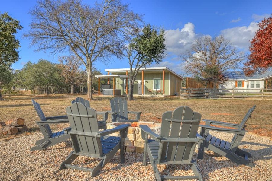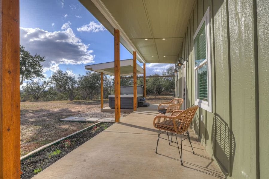 Step outside to the shaded patio, where you’ll find the perfect spot to relax and recharge. Take a dip in the hot tub and let the soothing waters melt your cares away as you soak in the breathtaking views of the Hill Country. Start your mornings with a cup of coffee on the front porch, where seating for two offers a front-row seat to the tranquil surroundings and morning breeze.