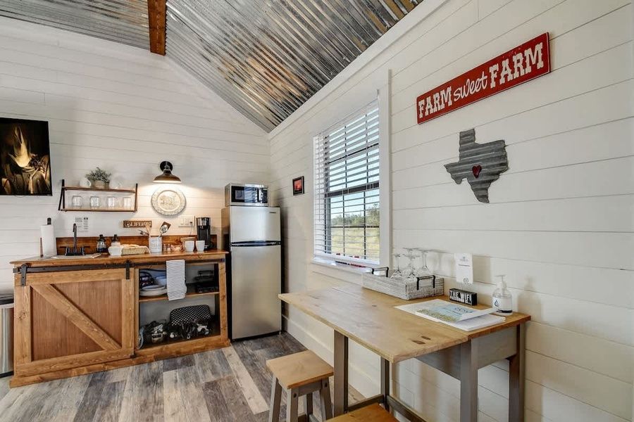 Welcome to Lone Star Cottage, a charming studio that is one of four nestled on 10 serene acres just a short 10-min drive from historic downtown Fredericksburg. This quaint yet modern abode features two luxurious queen-sized beds and a convenient kitchenette. Embrace the communal spirit of the shared “Party Barn” gazebo, offering games like cornhole, a welcoming firepit, outdoor dining area, gas grills, amazing sunset views, and an opportunity for stargazing. Savor the serenity and unwind! Lone Star Cottage is an inviting studio nestled within the breathtaking landscapes of Texas Hill Country, just a short drive away from the historic and vibrant downtown Fredericksburg. This charming retreat boasts a private en-suite bathroom, walk-in closet, and a private deck, inviting guests to unwind and embrace the serene countryside surroundings. Inside, modern conveniences harmonize with farmhouse charm, offering guests a comfortable stay. The cottage features high-speed Fiber Internet and a state-of-the-art 50-inch smart TV, allowing guests to indulge in their favorite entertainment options during leisure moments. The well-equipped kitchenette caters to diverse culinary needs. It includes an induction cooktop, a Keurig-style coffee maker, a microwave, an electric skillet, a toaster, and a stainless steel refrigerator. Pots, dishes, glassware, silverware, and cooking/grilling utensils are thoughtfully provided, ensuring that guests have everything required for meal preparation and dining convenience. Surrounded by over 10 acres of picturesque land, The Lone Star Cottage provides a peaceful retreat for sunset and stargazing enthusiasts as well as nature lovers. The expansive outdoor space offers opportunities for leisurely wildlife observation, making it an ideal spot to connect with the natural beauty of the countryside. A communal gazebo, affectionately referred to as the "Party Barn", serves as a delightful hub for socializing and creating cherished memories with loved ones. It features an outdoor dining table, two propane gas grills for culinary adventures, cornhole boards, and a propane gas fire pit, all complemented by ample seating. This inviting space with great sunset views and opportunities for amazing stargazing, encourages gatherings and, fostering moments of camaraderie and shared experiences amidst the serene countryside setting. With its well-appointed interiors, scenic surroundings, and thoughtful communal amenities, Lone Star Cottage is a haven where guests can unwind, revel in the beauty of nature, and create lasting memories with family and friends in the heart of Texas Hill Country. *If you need to work during your stay, high-speed fiber optic Internet is available. Easy Check-In Process We use Happy Guest for a seamless, app-free check-in experience. Just complete your rental agreement, ID verification, and a simple refundable security hold of USD1,000 (which is not a traditional security deposit, just a pending transaction) to receive your arrival instructions. If you'd prefer, you can opt for a Non-Refundable Damage Waiver instead, which provides coverage up to USD1,500. The waiver is USD53 for stays up to 10 nights, with an additional USD1.50 per day for stays longer than 10 nights. It’s simple: finish these steps, and you’re all set to enjoy your stay! Note: arrival info won’t be sent without completing these steps, and refunds aren’t possible if skipped. Happy Guest is web-based and user-friendly, with all the info about the house and local spots. You can even share it with friends and family. Got questions? Just message us anytime! Stay Texas has engaged VacayHome to ensure this listing contains all the information you need and that it is easy for you to book via search engines & online channels. VacayHome is connected directly to the property management system used by Stay Texas which ensures that availability & rates are up-to-date & accurate. When you book, VacayHome processes payment on behalf of Stay Texas and a charge will appear on your statement as "VacayHome". VacayHome will send you a confirmation e-mail that contains all the information you need to prepare for your vacation including arrival instructions. VacayHome has a 24 x 7 team to assist you with any questions or concerns you may have prior to arrival. To access VacayHome, obtain the customer support telephone number or read FAQs, please click on the links at the bottom of this page.
