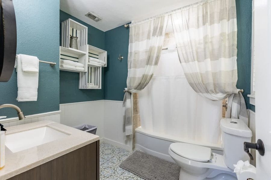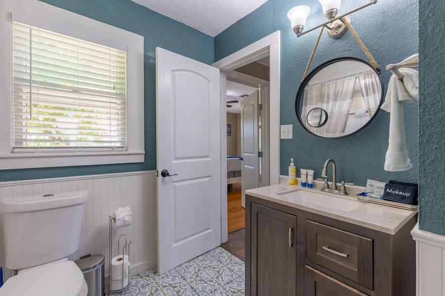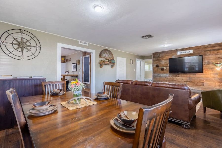 Welcome to the River Haus and the Tristian Suite, where comfort and relaxation await. This combo offers 3 bedrooms with comfortable bedrooms, each offering a peaceful retreat after a long day of exploration. A full kitchen in the main house and a kitchenette in the suite. As you step outside, you'll discover a great outdoor space designed for relaxation and entertainment. Two firepits create a cozy ambiance, perfect for gathering around and sharing stories or toasting marshmallows for a delightful treat. The property has a hot tub that invites you to immerse yourself in warmth and relaxation, soothing both the body and mind. A covered deck provides a shaded retreat where you can sit back and enjoy the fresh air while taking in the surrounding views. Step into the inviting River Haus, where modern amenities and rustic charm blend seamlessly. This delightful unit features two bedrooms and two bathrooms, accommodating up to six guests. The living room is a cozy and welcoming space, complete with plush seating for relaxation and an entertainment center featuring a flat-screen TV. Enjoy quality time with your loved ones or curl up with a book in this warm and inviting atmosphere. The fully equipped kitchen is a chef's delight, boasting modern appliances and ample counter space for meal preparation. The adjoining dining area features a charming table with seating for four, perfect for enjoying family meals or hosting intimate gatherings. River Haus offers two comfortable bedrooms. The master bedroom features a luxurious king-sized bed, providing a restful retreat after a day of exploration. The second bedroom is thoughtfully furnished with two queen-sized beds, ensuring a peaceful night's sleep. The unit boasts two well-appointed bathrooms, each featuring modern fixtures and a shower for added convenience. Tristian Suite is a cozy and intimate one-bedroom unit, providing a tranquil haven for up to two guests. The living area is tastefully designed, with comfortable seating to unwind and relax. Take advantage of the flat-screen TV for entertainment or simply enjoy the peaceful ambiance. The kitchenette is equipped with all the essentials to meet your basic culinary needs. An island with seating for two creates a cozy spot for enjoying meals. The bedroom is a serene space, featuring a comfortable queen-sized bed and offering a peaceful night's rest. The suite includes a well-appointed bathroom with modern fixtures and a shower for your convenience. Both units have their own outdoor spaces, allowing you to savor the beauty of nature and enjoy the tranquility of your surroundings. A private hot tub for relaxation and rejuvenation plus a firepit to gather around in the evenings for s'mores and stargazing. The spacious yard provides plenty of space for outdoor games and activities. The River Haus and Tristian Suite combo offers two distinct yet complementary units on one lot to provide everything you need for a memorable and enjoyable stay. Whether you're seeking relaxation or adventure, River Haus and Tristian Suite welcome you to experience the beauty of their surroundings and create cherished memories with your loved ones. House Rules: -Wood for firepit is not provided -No more than 8 occupants permitted -No Events or Parties are allowed -Place trash in designated receptacles -Observe City of Fredericksburg Quiet Hours - 10:00 PM to 7:00 AM -Parking instructions: Three off-street parking spaces are available. Illegally parked vehicles are subject to tow -The City of Fredericksburg is a Dark Sky Community with outdoor lighting restrictions. All outdoor lighting is encouraged to be turned off when no one is present. Easy Check-In Process We use Happy Guest for a seamless, app-free check-in experience. Just complete your rental agreement, ID verification, and a simple refundable security hold of USD1,000 (which is not a traditional security deposit, just a pending transaction) to receive your arrival instructions. If you'd prefer, you can opt for a Non-Refundable Damage Waiver instead, which provides coverage up to USD1,500. The waiver is USD62.54 for stays up to 10 nights, with an additional USD1.50 per day for stays longer than 10 nights. It’s simple: finish these steps, and you’re all set to enjoy your stay! Note: arrival info won’t be sent without completing these steps, and refunds aren’t possible if skipped. Happy Guest is web-based and user-friendly, with all the info about the house and local spots. You can even share it with friends and family. Got questions? Just message us anytime! Stay Texas has engaged VacayHome to ensure this listing contains all the information you need and that it is easy for you to book via search engines & online channels. VacayHome is connected directly to the property management system used by Stay Texas which ensures that availability & rates are up-to-date & accurate. When you book, VacayHome processes payment on behalf of Stay Texas and a charge will appear on your statement as "VacayHome". VacayHome will send you a confirmation e-mail that contains all the information you need to prepare for your vacation including arrival instructions. VacayHome has a 24 x 7 team to assist you with any questions or concerns you may have prior to arrival. To access VacayHome, obtain the customer support telephone number or read FAQs, please click on the links at the bottom of this page.