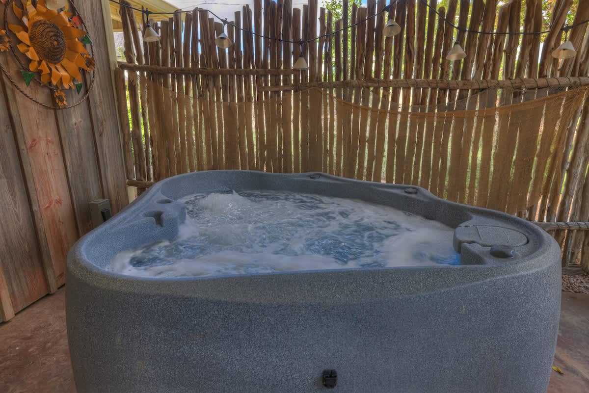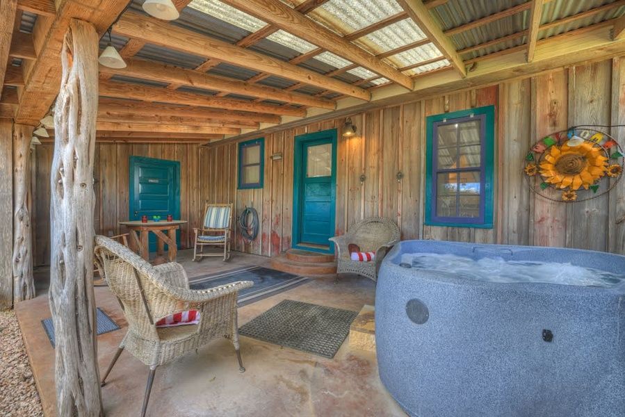 Unwind in the bright and inviting sunroom, which features a comfortable futon, perfect for an afternoon nap or reading a book. Step outside to your private porch, where you can relax in the hot tub, fire up the BBQ grill, or enjoy the warmth of the chimenea. Whether sipping your morning coffee or an evening glass of wine, the front porch seating creates the ideal space for quiet moments amidst nature. This cozy yet luxurious getaway is perfect for a peaceful and memorable stay near Fredericksburg.