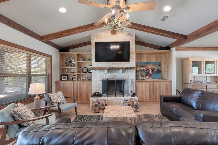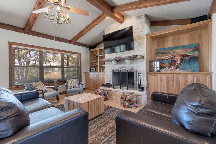 Welcome to the Bear Creek Crossing Combo, a picturesque, 235-acre estate sitting above beautiful Bear Creek and overlooking a valley of lush rolling pastures and miles of trails through walnut, cherry, and live oak stands. There is nothing better than relaxing with friends or family and watching the sunset over the waters of the crystal clear spring-fed lake. This combo comfortably sleeps 18 people with 4 bedrooms in the main house and 2 in the barn.