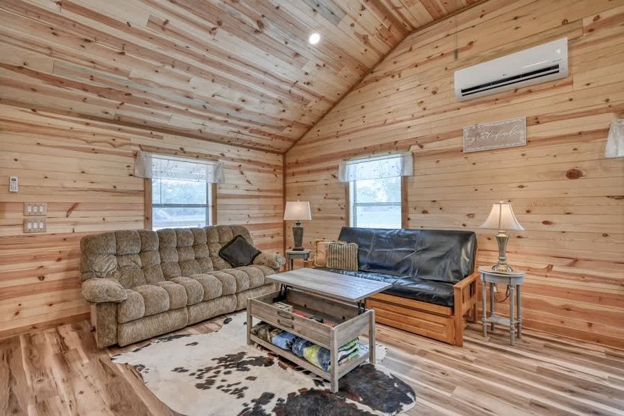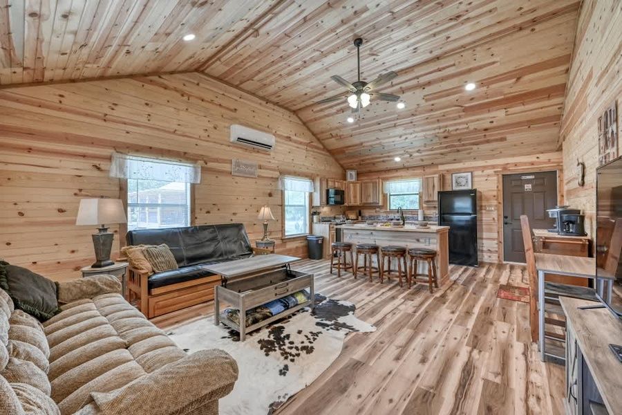 Discover your perfect Hill Country getaway in our charming 2-bedroom, 2-bath cabin. Each bedroom offers a tranquil retreat with cozy beds, ensuring a restful night's sleep. The fully equipped kitchen invites you to prepare delicious meals, while the inviting living area provides a cozy space to unwind. Step outside onto the spacious deck to soak in the stunning natural surroundings. After a day of exploring, relax in the private hot tub under the stars. Whether you're seeking a romantic escape or a fun-filled family vacation, this cabin promises a perfect blend of comfort and scenic beauty.