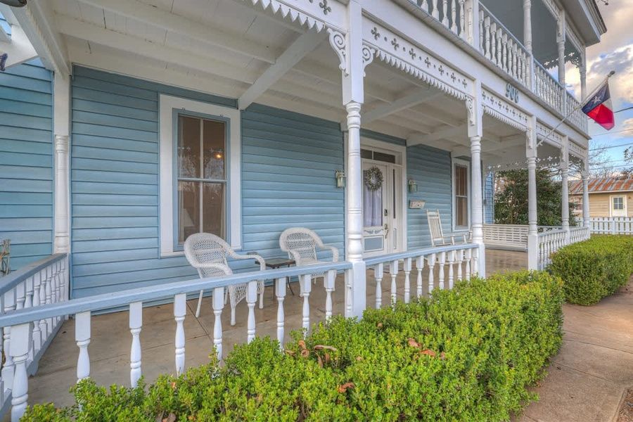 The Crockett House is a charming Victorian-style house built in the early 1900s and located only minutes away from Historic Main Street, making it the perfect vacation home for those looking to explore the local area. The house sits on a large corner lot with well-manicured outdoor spaces, including multiple porches for relaxing and enjoying the fresh air.