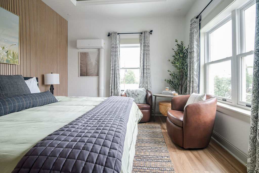 Perched above the beloved Headquarters Hats store, this suite places you steps away from the best shops, restaurants, and tasting rooms on Main Street. Inside, you'll find a spacious bedroom with a plush king bed and two inviting chairs perfect for reading, relaxing, or sipping wine after a day of exploring.