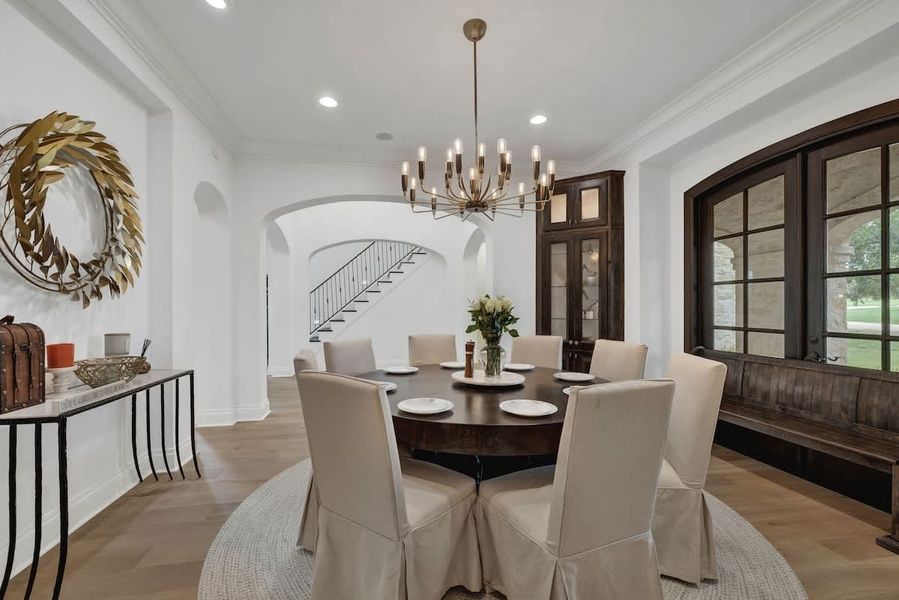 Experience unparalleled luxury at Watershaus Ranch, a private retreat just 15 minutes from the historic charm of downtown Fredericksburg. From the moment you pass through the gates, you'll be captivated by the elegance and warmth of this stunning home. Step inside to soaring ceilings and a spacious, open floor plan that radiates sophistication. The heart of the home is the chef’s dream kitchen, bathed in natural light that highlights the gorgeous stone wall framing the gas range, three ovens, and stainless steel side-by-side refrigerator with a bottom freezer drawer. With a chic coffee bar, cozy breakfast nook, and ample counter space, this kitchen is the perfect setting to create gourmet meals or casual snacks.