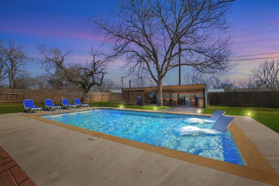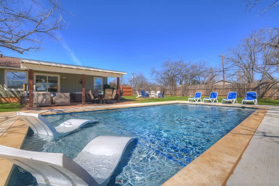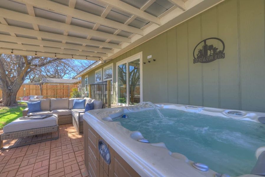 Welcome to Crystal Cow Haus where a world of comfort and fun await. Venture outside to an oasis of joy, complete with a sprawling swimming pool with a sun-soaked tanning ledge, bubbling hot tub, and crackling firepit for enchanting evenings beneath the starlit sky. And let's not forget the epic party barn where memories are made and laughter never ends! Tucked just a stone's throw away from Main Street, this charming Hill Country getaway offers the perfect blend of relaxation and adventure. Crystal Cow Haus is a haven meticulously crafted to cater to your comfort, enjoyment, and rejuvenation. From Crystal chandeliers enhancing the open-concept living space to the outdoor oasis, this property offers a perfect blend of style and functionality for an unforgettable stay. In the spacious living area, you'll find comfortable seating arranged around a 75" flat-screen TV and complemented by the warm glow of an electric fireplace. Here, you can indulge in your favorite shows or movies, creating the perfect atmosphere for cozy gatherings with loved ones. Next to the living room, you'll discover the sophisticated dining space showcasing a sleek table for six, seamlessly connected to the modernized kitchen boasting stainless steel appliances. The kitchen island extends the gathering space, accommodating four more guests with its bar seating, ensuring ample room for socializing while cooking together. As the day winds down, escape to one of the four exquisitely furnished bedrooms, each showcasing a sumptuous king bed for blissful nights of rest. The master bathroom is a private sanctuary, offering a large soaking tub, double vanities, and a separate shower for ultimate relaxation and rejuvenation. Meanwhile, the second and third bathrooms feature a shower and tub/shower combo, ensuring comfort for all guests. Step outside to your private outdoor oasis, where a covered patio beckons with a comfortable second living area with couch seating, perfect for enjoying the fresh air and serene surroundings. Take a dip in the large pool, bask in the sun on luxurious loungers, or gather around the firepit with chairs for cozy conversations under the stars. The hot tub, accommodating up to six guests, offers a soothing retreat after a day of wine country adventures. For additional entertainment, the property features Crystal's party barn with ample seating around a large flat-screen TV, providing the perfect space for movie nights or watching sports events with friends and family. Experience the epitome of luxury and relaxation at this stunning retreat, where every amenity is thoughtfully curated to ensure an unforgettable stay for you and your guests. STR Permit Number #8056002039 House Rules and Things to Note: -No more than 8 occupants permitted -Pets are not allowed -No Events or Parties are allowed -Place trash in designated receptacles -Observe City of Fredericksburg Quiet Hours - 10:00 PM to 7:00 AM -Parking instructions: Illegally parked vehicles are subject to tow -The City of Fredericksburg is a Dark Sky Community with outdoor lighting restrictions. All outdoor lighting is encouraged to be turned off when no one is present. Easy Check-In Process We use Happy Guest for a seamless, app-free check-in experience. Just complete your rental agreement, ID verification, and a simple refundable security hold of USD1,000 (which is not a traditional security deposit, just a pending transaction) to receive your arrival instructions. If you'd prefer, you can opt for a Non-Refundable Damage Waiver instead, which provides coverage up to USD1,500. The waiver is USD62.54 for stays up to 10 nights, with an additional USD1.50 per day for stays longer than 10 nights. It’s simple: finish these steps, and you’re all set to enjoy your stay! Note: arrival info won’t be sent without completing these steps, and refunds aren’t possible if skipped. Happy Guest is web-based and user-friendly, with all the info about the house and local spots. You can even share it with friends and family. Got questions? Just message us anytime! Stay Texas has engaged VacayHome to ensure this listing contains all the information you need and that it is easy for you to book via search engines & online channels. VacayHome is connected directly to the property management system used by Stay Texas which ensures that availability & rates are up-to-date & accurate. When you book, VacayHome processes payment on behalf of Stay Texas and a charge will appear on your statement as "VacayHome". VacayHome will send you a confirmation e-mail that contains all the information you need to prepare for your vacation including arrival instructions. VacayHome has a 24 x 7 team to assist you with any questions or concerns you may have prior to arrival. To access VacayHome, obtain the customer support telephone number or read FAQs, please click on the links at the bottom of this page.