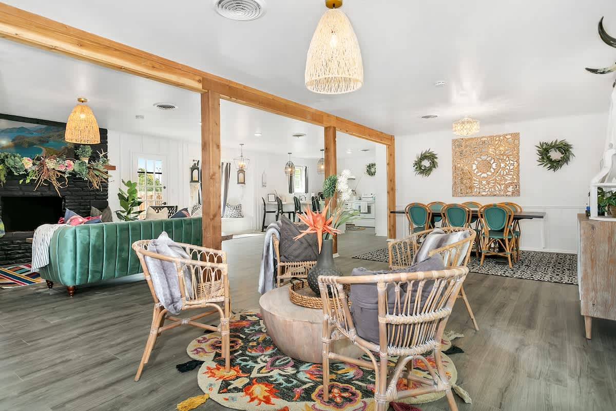 Pops of bright colors throughout the home and stunning decor give the house a luxurious feel. Three bedrooms and two bathrooms offer plenty of space for up to six guests. Each bedroom features a king-size bed and a television for those who enjoy lounging in bed and watching their favorite show before bedtime.