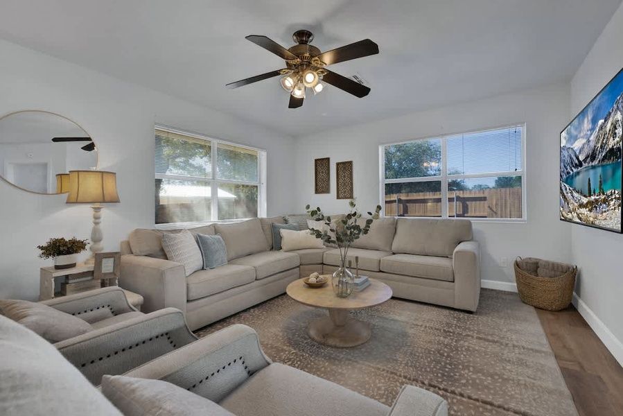 Indulge in the ultimate getaway with Weitz Haven with two homes on the same property. This main house has a spacious living room that seamlessly connects to a dining room for eight, accompanied by a fully equipped kitchen boasting gleaming stainless steel appliances. The Pool House is a one bedroom that boasts a kitchenette and a cozy living room. Outside, the fun never ends with a pool, hot tub, games like cornhole and horseshoes, and a welcoming firepit. Your dream escape awaits. Weitz Haven is a testament to modern design, offering a harmonious blend of spacious interiors and captivating outdoor amenities. As you step inside the main house, the living room welcomes you with an air of spacious elegance. A large, inviting couch and a selection of chairs are thoughtfully arranged around the flat screen TV. The dining room, with its expansive table seating for eight plus additional four seats at the kitchen island provide ample space for everyone to enjoy meals together. The full kitchen, complete with stainless steel appliances, is a haven for culinary enthusiasts. Bedroom one features a king-sized bed, offering a sumptuous haven for rest. Additional seating for two provides a cozy spot for morning coffee or quiet reflection. The en-suite bathroom is a sanctuary in itself, complete with a double vanity, a walk-in shower, and a separate soaking tub. Bedroom two invites a comfortable queen-sized bed, ensuring a peaceful night's sleep. Bedroom three is perfect for friends or family, this room features two queen-sized beds, providing both comfort and versatility. These two bedrooms share a second full bathroom, complete with double vanities and an inviting walk-in shower. The Pool House is a delightful retreat offering a welcoming and cozy space with a large couch and flat screen TV. Adjacent to the living room is a kitchenette, offering just what you need for preparing simple meals and snacks. The bedroom features a queen-sized bed, ensuring a restful and comfortable retreat after a day of exploring Fredericksburg. The full bathroom offers all the amenities you'll need. Weitz Haven has an incredible outdoor space, the pool is a refreshing centerpiece, inviting you to take a leisurely swim or bask in the sun-drenched surroundings. The adjacent hot tub offers a soothing retreat, perfect for unwinding after a day of exploration. A variety of outdoor amenities promise endless entertainment. Engage in a friendly game of cornhole or horseshoes, or test your skills on the pickleball court or with a game of basketball. The table with seating for four is an inviting spot for alfresco dining, surrounded by the beauty of the outdoors. Adirondack chairs encircling the firepit offer a cozy setting for sharing stories and gazing at the stars. Additional plush seating under the shade of the mature trees ensures comfort and tranquility. -Please be aware that the pool and hot tub are serviced and cleaned on Mondays and Thursdays, so you may encounter the pool cleaning company if you have the home reserved during these times. Easy Check-In Process We use Happy Guest for a seamless, app-free check-in experience. Just complete your rental agreement, ID verification, and a simple refundable security hold of USD1,000 (which is not a traditional security deposit, just a pending transaction) to receive your arrival instructions. If you'd prefer, you can opt for a Non-Refundable Damage Waiver instead, which provides coverage up to USD1,500. The waiver is USD62.54 for stays up to 10 nights, with an additional USD1.50 per day for stays longer than 10 nights. It’s simple: finish these steps, and you’re all set to enjoy your stay! Note: arrival info won’t be sent without completing these steps, and refunds aren’t possible if skipped. Happy Guest is web-based and user-friendly, with all the info about the house and local spots. You can even share it with friends and family. Got questions? Just message us anytime! Stay Texas has engaged VacayHome to ensure this listing contains all the information you need and that it is easy for you to book via search engines & online channels. VacayHome is connected directly to the property management system used by Stay Texas which ensures that availability & rates are up-to-date & accurate. When you book, VacayHome processes payment on behalf of Stay Texas and a charge will appear on your statement as "VacayHome". VacayHome will send you a confirmation e-mail that contains all the information you need to prepare for your vacation including arrival instructions. VacayHome has a 24 x 7 team to assist you with any questions or concerns you may have prior to arrival. To access VacayHome, obtain the customer support telephone number or read FAQs, please click on the links at the bottom of this page.