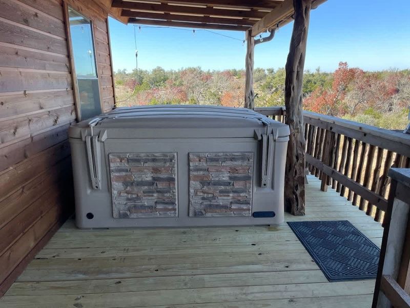 Welcome to Rocky Ridge Cabin! Experience nature in the Texas Hill Country at this cozy cabin close to Enchanted Rock. The cabin sits on five beautiful acres, so there is plenty of room to explore the wondrous beauty of the Hill Country. This is the perfect place to gaze at the bright stars in the night sky, disconnect, unwind in the hot tub, and relax around the shared firepit while reconnecting with nature and your loved ones.