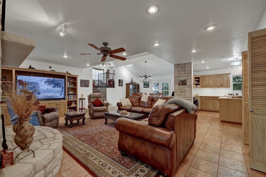 Step into a world of comfort at our spacious retreat, where every detail has been carefully crafted to ensure an unforgettable experience for you and your guests. From the moment you arrive, you'll be greeted by an open living area designed for relaxation and entertainment. Sink into the plush leather couches and double recliners, where you can unwind and catch up on your favorite shows on the large flat-screen TV.
