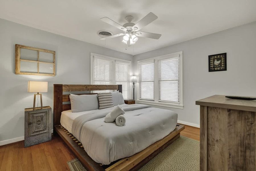 Each guest will appreciate the privacy and comfort of the well-appointed bedrooms, all featuring king-size beds and their own televisions. The home also includes two convenient bathrooms—one with a shower/tub combination and another with a spacious walk-in shower—ensuring a relaxing experience for everyone.