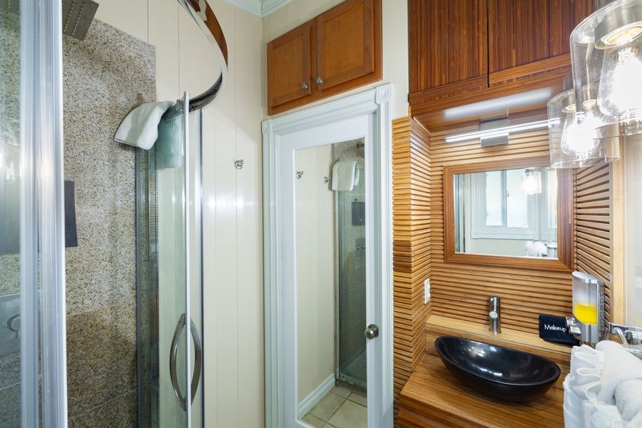 Our classic two-bedroom cottages feature vaulted ceilings, natural decor, and an open family entertainment setting. Air conditioning, Wifi, and a widescreen television in every cottage makes your stay comfortable and convenient. Two king beds with a separate bathroom are comfortably furnished. It also offers a separate living room with a pull-out sofa bed, dining area, a full kitchen, and a covered porch; your own private oasis to accommodate families with a maximum of five people*.