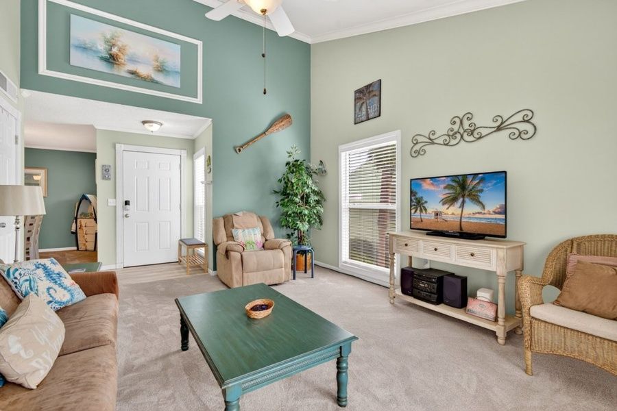 When it's time to call it a night, you will enjoy the two bedrooms with extremely comfortable beds. The master bedroom features a king-sized bed and twin trundle bed, flat screen TV, and en-suite full bathroom.