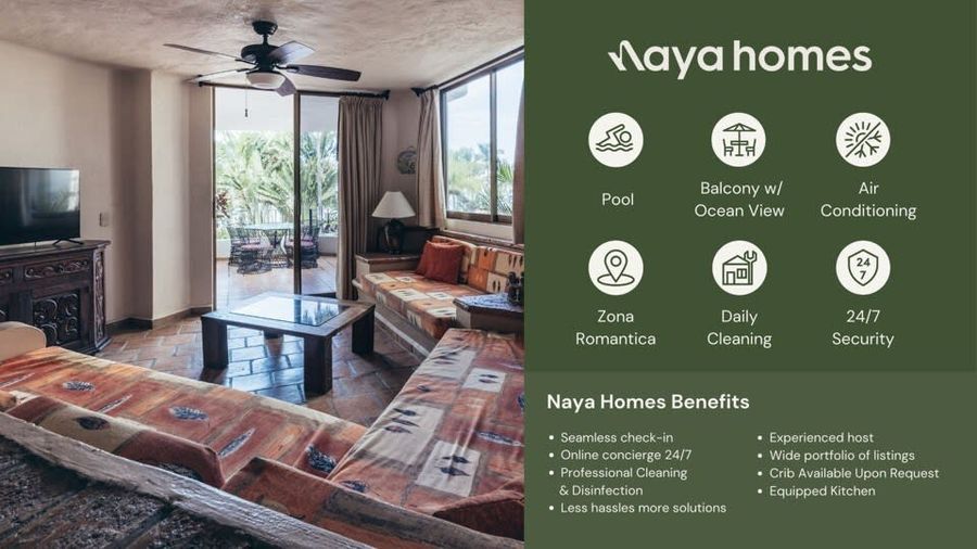 FROM DECEMBER 2024 TO MARCH 2025 CHECK OUTS WILL BE ON SATURDAYS ONLY. Spend your holidays in this two-bedroom unit right in front of the beach in the heart of Zona Romantica, the most sought-after spot in Puerto Vallarta: • Two bedrooms with 1 King and 2 twin beds • Private balcony with a fantastic view of Playa de los Muertos beach • Daily cleaning, excluding Sundays • A/C in the unit • Beachfront building in a prime location (Zona Romantica) • Rooftop heated swimming pool, which overlooks the beach • 24/7 security in the lobby Escape to paradise and enjoy the ultimate beachfront getaway in the heart of Zona Romantica, Puerto Vallarta's most coveted location. Immerse yourself in the luxurious amenities of this two-bedroom unit with breathtaking ocean views and a private balcony overlooking the stunning Playa de los Muertos beach. Relax and unwind in the comfort of your fully air-conditioned unit, which has a plush king-size bed and two cozy twin-size beds to accommodate up to four guests. You'll enjoy daily cleaning service (excluding Sundays), ensuring a stress-free stay with nothing to worry about. Indulge in the rooftop heated swimming pool, which offers a panoramic view of the beach, providing the perfect backdrop for soaking up the sun and taking a refreshing dip. You'll also appreciate the added peace of mind of 24/7 security in the lobby, making your stay safe and secure. Take advantage of this incredible opportunity to experience the ultimate beach vacation in Puerto Vallarta. Book your stay today and discover why this beachfront unit is the perfect spot for your next holiday getaway. Naya is dedicated to ensuring your stay is smooth and comfortable. Days before the arrival, one of our happiness agents will reach out to you to coordinate the key delivery. Please feel free to reach us anytime if you have issues or need any recommendations. Welcome to Old Town, also commonly known as the “Romantic Zone” (Zona Romantica). This neighborhood is famous for its authentic Mexican architecture, stunning sea views and bustling LGBTQ+ nightlife. This neighborhood is perfectly situated near Puerto Vallarta’s most popular beaches, Playa Olas Atlas and Playa Los Muertos, making it the perfect spot to lounge by the beach during the day and explore Puerto Vallarta’s bar and restaurant scene by night. Zona Romantica is a highly walkable area, where you can access the beach and the restaurant and nightlife safely at night. Puerto Vallarta is well connected by Uber and Taxi’s (negotiate!). Important: Potential street noise from 8am to 8pm 1. The property and the specific unit in the reservation shall not be used by more than the number of people or pets listed in the reservation. All guests will have to register with Naya Homes before their arrival, and additional guests may incur additional costs or the cancelation of the reservation, without a refund, according to Naya Homes cancellation policies. Guests outside the reservation details may not be permitted according to building rules. 2. By booking with Naya Homes, regardless of the platform used, guests agree to provide all necessary check-in information, including but not limited to copies of valid identification (such as a driver's license or passport), full names and ages of all guests, email addresses, and contact phone numbers. Guests will also complete any required admissions forms and documentation. Failure or refusal to provide the requested information and completion of the admissions forms may result in the immediate cancellation of the reservation without any refund. 3. All guests must honor the peace and privacy of their neighbors, refrain from participating in any unlawful activities, and adhere to the building regulations diligently. Non-compliance may result in the termination of your reservation without refund or financial penalties, as stipulated by either the building management, the host or Naya Homes. 4. Please respect the tranquility of our community by adhering to quiet hours from 10 PM to 8 AM. Non-compliance may result in the termination of your reservation without refund or a financial penalty added to your reservation costs. 5. No parties or gatherings of any kind are permitted. Non-compliance may result in the termination of your reservation without refund or a financial penalty added to your reservation costs. 6. Pets are not allowed unless expressly noted in your reservation. If you bring a pet to a property that does not allow pets, your reservation may be immediately canceled without a refund. For units where pets are specifically allowed, an additional special Pet Cleaning fee and a standard cleaning fee will be charged on top of the reservation if you bring a pet. 7. No smoking is permitted anywhere on the premises or in the building's common areas. A fine will be charged to the reservation if this is not respected. Casago - Puerto Vallarta has engaged VacayHome to ensure this listing contains all the information you need and that it is easy for you to book via search engines & online channels. VacayHome is connected directly to the property management system used by Casago - Puerto Vallarta which ensures that availability & rates are up-to-date & accurate. When you book, VacayHome processes payment on behalf of Casago - Puerto Vallarta and a charge will appear on your statement as "VacayHome". VacayHome will send you a confirmation e-mail that contains all the information you need to prepare for your vacation including arrival instructions. VacayHome has a 24 x 7 team to assist you with any questions or concerns you may have prior to arrival. To access VacayHome, obtain the customer support telephone number or read FAQs, please click on the links at the bottom of this page.