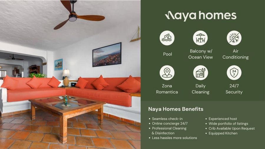 FROM DECEMBER 2024 TO MARCH 2025 CHECK OUTS WILL BE ON SATURDAYS ONLY. Spend your holidays in this two-bedroom unit right in front of the beach in the heart of Zona Romantica, the most sought-after spot in Puerto Vallarta: • Two bedrooms with 1 King and 2 twin beds • Private balcony with a fantastic view of Playa de los Muertos beach • Daily cleaning, excluding Sundays • A/C in the unit • Beachfront building in a prime location (Zona Romantica) • Rooftop heated swimming pool, which overlooks the beach • 24/7 security in the lobby Escape to paradise and enjoy the ultimate beachfront getaway in the heart of Zona Romantica, Puerto Vallarta's most coveted location. Immerse yourself in the luxurious amenities of this two-bedroom unit with breathtaking ocean views and a private balcony overlooking the stunning Playa de los Muertos beach. Relax and unwind in the comfort of your fully air-conditioned unit, which has a plush king-size bed and two cozy twin-size beds to accommodate up to four guests. You'll enjoy daily cleaning service (excluding Sundays), ensuring a stress-free stay with nothing to worry about. Indulge in the rooftop heated swimming pool, which offers a panoramic view of the beach, providing the perfect backdrop for soaking up the sun and taking a refreshing dip. You'll also appreciate the added peace of mind of 24/7 security in the lobby, making your stay safe and secure. Take advantage of this incredible opportunity to experience the ultimate beach vacation in Puerto Vallarta. Book your stay today and discover why this beachfront unit is the perfect spot for your next holiday getaway. Naya is dedicated to ensuring your stay is smooth and comfortable. Days before the arrival, one of our happiness agents will reach out to you to coordinate the key delivery. Please feel free to reach us anytime if you have issues or need any recommendations. Welcome to Old Town, also commonly known as the “Romantic Zone” (Zona Romantica). This neighborhood is famous for its authentic Mexican architecture, stunning sea views and bustling LGBTQ+ nightlife. This neighborhood is perfectly situated near Puerto Vallarta’s most popular beaches, Playa Olas Atlas and Playa Los Muertos, making it the perfect spot to lounge by the beach during the day and explore Puerto Vallarta’s bar and restaurant scene by night. Zona Romantica is a highly walkable area, where you can access the beach and the restaurant and nightlife safely at night. Puerto Vallarta is well connected by Uber and Taxi’s (negotiate!). Important: Potential street noise from 8am to 8pm. 1. The property and the specific unit in the reservation shall not be used by more than the number of people or pets listed in the reservation. All guests will have to register with Naya Homes before their arrival, and additional guests may incur additional costs or the cancelation of the reservation, without a refund, according to Naya Homes cancellation policies. Guests outside the reservation details may not be permitted according to building rules. 2. By booking with Naya Homes, regardless of the platform used, guests agree to provide all necessary check-in information, including but not limited to copies of valid identification (such as a driver's license or passport), full names and ages of all guests, email addresses, and contact phone numbers. Guests will also complete any required admissions forms and documentation. Failure or refusal to provide the requested information and completion of the admissions forms may result in the immediate cancellation of the reservation without any refund. 3. All guests must honor the peace and privacy of their neighbors, refrain from participating in any unlawful activities, and adhere to the building regulations diligently. Non-compliance may result in the termination of your reservation without refund or financial penalties, as stipulated by either the building management, the host or Naya Homes. 4. Please respect the tranquility of our community by adhering to quiet hours from 10 PM to 8 AM. Non-compliance may result in the termination of your reservation without refund or a financial penalty added to your reservation costs. 5. No parties or gatherings of any kind are permitted. Non-compliance may result in the termination of your reservation without refund or a financial penalty added to your reservation costs. 6. Pets are not allowed unless expressly noted in your reservation. If you bring a pet to a property that does not allow pets, your reservation may be immediately canceled without a refund. For units where pets are specifically allowed, an additional special Pet Cleaning fee and a standard cleaning fee will be charged on top of the reservation if you bring a pet. 7. No smoking is permitted anywhere on the premises or in the building's common areas. A fine will be charged to the reservation if this is not respected. Casago - Puerto Vallarta has engaged VacayHome to ensure this listing contains all the information you need and that it is easy for you to book via search engines & online channels. VacayHome is connected directly to the property management system used by Casago - Puerto Vallarta which ensures that availability & rates are up-to-date & accurate. When you book, VacayHome processes payment on behalf of Casago - Puerto Vallarta and a charge will appear on your statement as "VacayHome". VacayHome will send you a confirmation e-mail that contains all the information you need to prepare for your vacation including arrival instructions. VacayHome has a 24 x 7 team to assist you with any questions or concerns you may have prior to arrival. To access VacayHome, obtain the customer support telephone number or read FAQs, please click on the links at the bottom of this page.