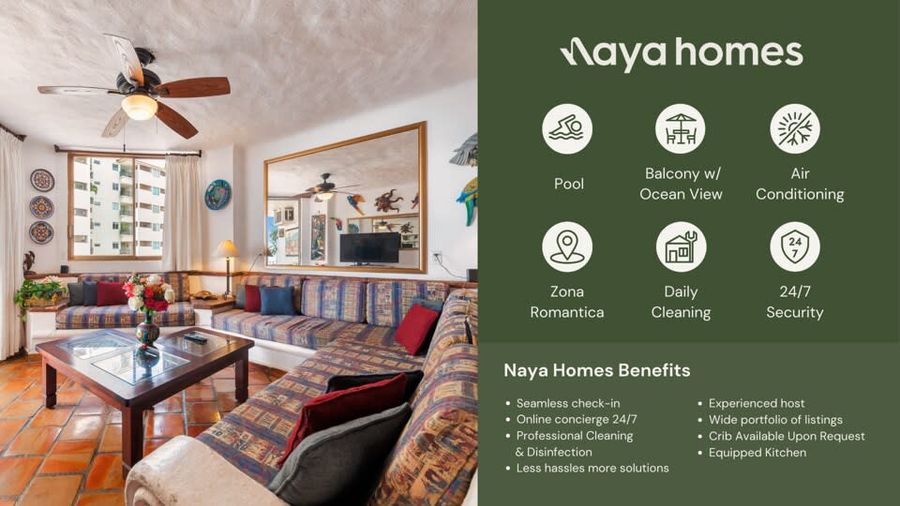 FROM DECEMBER 2024 TO MARCH 2025 CHECK OUTS WILL BE ON SATURDAYS ONLY. Spend your holidays in this two-bedroom unit right in front of the beach in the heart of Zona Romantica, the most sought-after spot in Puerto Vallarta: • Two bedrooms with 2 King beds • Private balcony with a fantastic view of Playa de los Muertos beach • Daily cleaning, excluding Sundays • A/C in the unit • Beachfront building in a prime location (Zona Romantica) • Rooftop heated swimming pool, which overlooks the beach • 24/7 security in the lobby Escape to paradise and enjoy the ultimate beachfront getaway in the heart of Zona Romantica, Puerto Vallarta's most coveted location. Immerse yourself in the luxurious amenities of this two-bedroom unit with breathtaking ocean views and a private balcony overlooking the stunning Playa de los Muertos beach. Relax and unwind in the comfort of your fully air-conditioned unit, which has two plush king-size beds to accommodate up to four guests. You'll enjoy daily cleaning service (excluding Sundays), ensuring a stress-free stay with nothing to worry about. Indulge in the rooftop heated swimming pool, which offers a panoramic view of the beach, providing the perfect backdrop for soaking up the sun and taking a refreshing dip. You'll also appreciate the added peace of mind of 24/7 security in the lobby, making your stay safe and secure. Take advantage of this incredible opportunity to experience the ultimate beach vacation in Puerto Vallarta. Book your stay today and discover why this beachfront unit is the perfect spot for your next holiday getaway. Naya is dedicated to ensuring your stay is smooth and comfortable. Days before the arrival, one of our happiness agents will reach out to you to coordinate the key delivery. Please feel free to reach us anytime if you have issues or need any recommendations. Welcome to Old Town, also commonly known as the “Romantic Zone” (Zona Romantica). This neighborhood is famous for its authentic Mexican architecture, stunning sea views and bustling LGBTQ+ nightlife. This neighborhood is perfectly situated near Puerto Vallarta’s most popular beaches, Playa Olas Atlas and Playa Los Muertos, making it the perfect spot to lounge by the beach during the day and explore Puerto Vallarta’s bar and restaurant scene by night. Zona Romantica is a highly walkable area, where you can access the beach and the restaurant and nightlife safely at night. Puerto Vallarta is well connected by Uber and Taxi’s (negotiate!). Important: Potential street noise from 8am to 8pm. 1. The property and the specific unit in the reservation shall not be used by more than the number of people or pets listed in the reservation. All guests will have to register with Naya Homes before their arrival, and additional guests may incur additional costs or the cancelation of the reservation, without a refund, according to Naya Homes cancellation policies. Guests outside the reservation details may not be permitted according to building rules. 2. By booking with Naya Homes, regardless of the platform used, guests agree to provide all necessary check-in information, including but not limited to copies of valid identification (such as a driver's license or passport), full names and ages of all guests, email addresses, and contact phone numbers. Guests will also complete any required admissions forms and documentation. Failure or refusal to provide the requested information and completion of the admissions forms may result in the immediate cancellation of the reservation without any refund. 3. All guests must honor the peace and privacy of their neighbors, refrain from participating in any unlawful activities, and adhere to the building regulations diligently. Non-compliance may result in the termination of your reservation without refund or financial penalties, as stipulated by either the building management, the host or Naya Homes. 4. Please respect the tranquility of our community by adhering to quiet hours from 10 PM to 8 AM. Non-compliance may result in the termination of your reservation without refund or a financial penalty added to your reservation costs. 5. No parties or gatherings of any kind are permitted. Non-compliance may result in the termination of your reservation without refund or a financial penalty added to your reservation costs. 6. Pets are not allowed unless expressly noted in your reservation. If you bring a pet to a property that does not allow pets, your reservation may be immediately canceled without a refund. For units where pets are specifically allowed, an additional special Pet Cleaning fee and a standard cleaning fee will be charged on top of the reservation if you bring a pet. 7. No smoking is permitted anywhere on the premises or in the building's common areas. A fine will be charged to the reservation if this is not respected. Casago - Puerto Vallarta has engaged VacayHome to ensure this listing contains all the information you need and that it is easy for you to book via search engines & online channels. VacayHome is connected directly to the property management system used by Casago - Puerto Vallarta which ensures that availability & rates are up-to-date & accurate. When you book, VacayHome processes payment on behalf of Casago - Puerto Vallarta and a charge will appear on your statement as "VacayHome". VacayHome will send you a confirmation e-mail that contains all the information you need to prepare for your vacation including arrival instructions. VacayHome has a 24 x 7 team to assist you with any questions or concerns you may have prior to arrival. To access VacayHome, obtain the customer support telephone number or read FAQs, please click on the links at the bottom of this page.