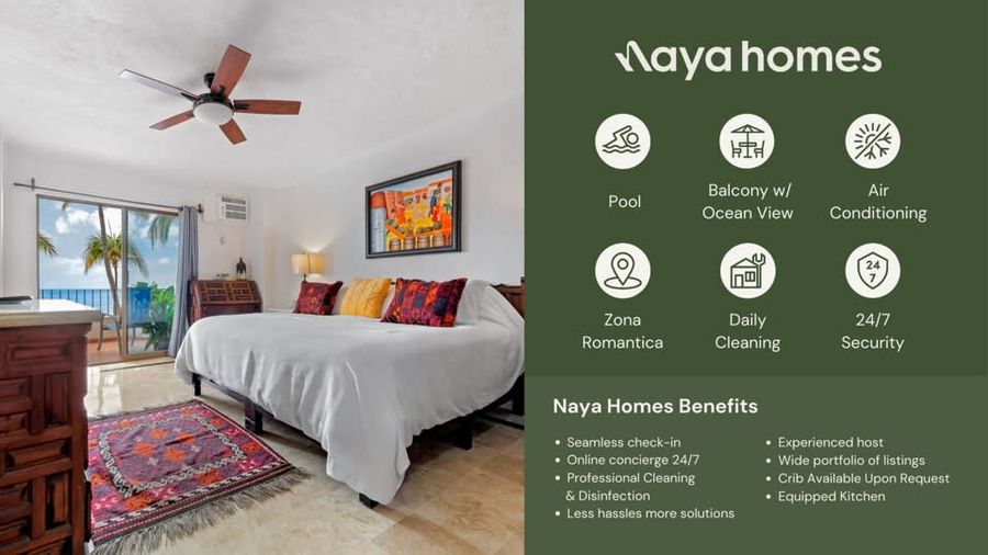 FROM DECEMBER 2024 TO MARCH 2025 CHECK OUTS WILL BE ON SATURDAYS ONLY. Spend your holidays in this two-bedroom unit right in front of the beach in the heart of Zona Romantica, the most sought-after spot in Puerto Vallarta: • Two bedrooms with 1 King and 2 twin beds • Private balcony with a fantastic view of Playa de los Muertos beach • Daily cleaning, excluding Sundays • A/C in the unit • Beachfront building in a prime location (Zona Romantica) • Rooftop heated swimming pool, which overlooks the beach • 24/7 security in the lobby Escape to paradise and enjoy the ultimate beachfront getaway in the heart of Zona Romantica, Puerto Vallarta's most coveted location. Immerse yourself in the luxurious amenities of this two-bedroom unit with breathtaking ocean views and a private balcony overlooking the stunning Playa de los Muertos beach. Relax and unwind in the comfort of your fully air-conditioned unit, which has a plush king-size bed and two cozy twin-size beds to accommodate up to four guests. You'll enjoy daily cleaning service (excluding Sundays), ensuring a stress-free stay with nothing to worry about. Indulge in the rooftop heated swimming pool, which offers a panoramic view of the beach, providing the perfect backdrop for soaking up the sun and taking a refreshing dip. You'll also appreciate the added peace of mind of 24/7 security in the lobby, making your stay safe and secure. Take advantage of this incredible opportunity to experience the ultimate beach vacation in Puerto Vallarta. Book your stay today and discover why this beachfront unit is the perfect spot for your next holiday getaway. Naya is dedicated to ensuring your stay is smooth and comfortable. Days before the arrival, one of our happiness agents will reach out to you to coordinate the key delivery. Please feel free to reach us anytime if you have issues or need any recommendations. Welcome to Old Town, also commonly known as the “Romantic Zone” (Zona Romantica). This neighborhood is famous for its authentic Mexican architecture, stunning sea views and bustling LGBTQ+ nightlife. This neighborhood is perfectly situated near Puerto Vallarta’s most popular beaches, Playa Olas Atlas and Playa Los Muertos, making it the perfect spot to lounge by the beach during the day and explore Puerto Vallarta’s bar and restaurant scene by night. Zona Romantica is a highly walkable area, where you can access the beach and the restaurant and nightlife safely at night. Puerto Vallarta is well connected by Uber and Taxi’s (negotiate!). Important: Pool closed from December 2nd to 6th. 1. The property and the specific unit in the reservation shall not be used by more than the number of people or pets listed in the reservation. All guests will have to register with Naya Homes before their arrival, and additional guests may incur additional costs or the cancelation of the reservation, without a refund, according to Naya Homes cancellation policies. Guests outside the reservation details may not be permitted according to building rules. 2. By booking with Naya Homes, regardless of the platform used, guests agree to provide all necessary check-in information, including but not limited to copies of valid identification (such as a driver's license or passport), full names and ages of all guests, email addresses, and contact phone numbers. Guests will also complete any required admissions forms and documentation. Failure or refusal to provide the requested information and completion of the admissions forms may result in the immediate cancellation of the reservation without any refund. 3. All guests must honor the peace and privacy of their neighbors, refrain from participating in any unlawful activities, and adhere to the building regulations diligently. Non-compliance may result in the termination of your reservation without refund or financial penalties, as stipulated by either the building management, the host or Naya Homes. 4. Please respect the tranquility of our community by adhering to quiet hours from 10 PM to 8 AM. Non-compliance may result in the termination of your reservation without refund or a financial penalty added to your reservation costs. 5. No parties or gatherings of any kind are permitted. Non-compliance may result in the termination of your reservation without refund or a financial penalty added to your reservation costs. 6. Pets are not allowed unless expressly noted in your reservation. If you bring a pet to a property that does not allow pets, your reservation may be immediately canceled without a refund. For units where pets are specifically allowed, an additional special Pet Cleaning fee and a standard cleaning fee will be charged on top of the reservation if you bring a pet. 7. No smoking is permitted anywhere on the premises or in the building's common areas. A fine will be charged to the reservation if this is not respected. Casago - Puerto Vallarta has engaged VacayHome to ensure this listing contains all the information you need and that it is easy for you to book via search engines & online channels. VacayHome is connected directly to the property management system used by Casago - Puerto Vallarta which ensures that availability & rates are up-to-date & accurate. When you book, VacayHome processes payment on behalf of Casago - Puerto Vallarta and a charge will appear on your statement as "VacayHome". VacayHome will send you a confirmation e-mail that contains all the information you need to prepare for your vacation including arrival instructions. VacayHome has a 24 x 7 team to assist you with any questions or concerns you may have prior to arrival. To access VacayHome, obtain the customer support telephone number or read FAQs, please click on the links at the bottom of this page.
