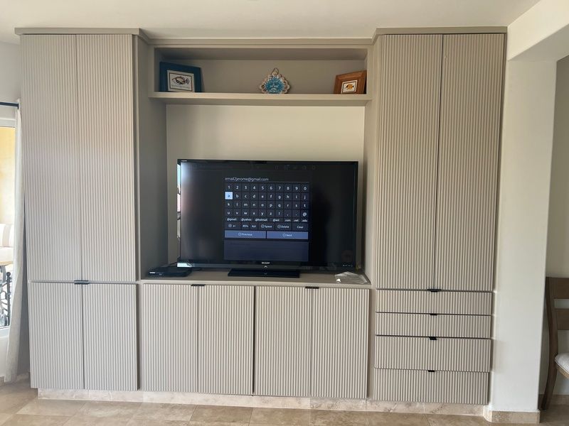 The spacious L-shaped living room unfolds before you, a sanctuary for relaxation and entertainment. Adorned with a deluxe entertainment center, equipped with a plethora of streaming options including Netflix, Amazon Prime, Disney, and Internet TV, endless hours of enjoyment await. For additional accommodation, a plush pull-out couch with a queen-sized mattress stands ready, surrounded by an array of games, toys, and movies to delight guests of all ages.