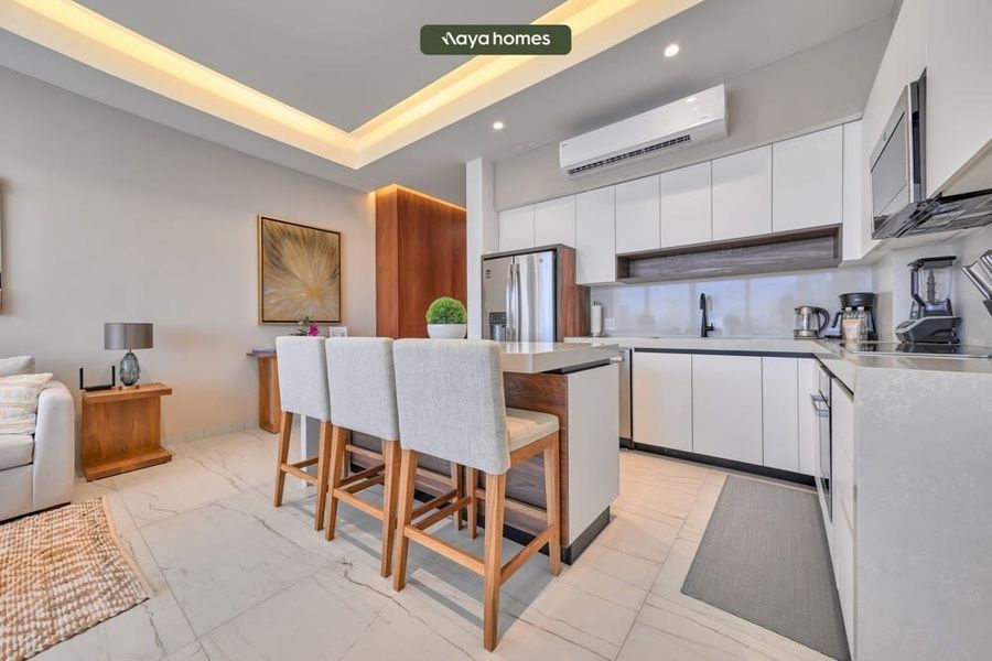 Brand new 2-bedroom condo in the iconic Romantic Zone / Old Town • Two queen beds • Private balcony overlooking Old Town • 10 minutes walking to the beach • Rooftop with a view of the ocean and city skyline • Heated rooftop infinity-edged pool with jacuzzi • Outdoor kitchen and bar with BBQ area • Fully equipped condo with all essential kitchen appliances and washer and dryer in the unit • 24/7 security with controlled access Welcome to Madero 320, a brand-new 2-bedroom condo located in the iconic Romantic Zone of Puerto Vallarta, where local heritage meets contemporary design. The condo is a blend of comfort and style with two queen beds, air conditioning in all rooms, and a private balcony overlooking the charming Old Town. The fully-equipped space ensures a hassle-free stay, featuring essential kitchen appliances and an in-unit washer and dryer. The high-quality porcelain tile flooring, marble vanity in the bathrooms, and Parota wood cabinetry add a touch of luxury, while the LED ceiling lights create a warm and inviting ambiance. Location and Amenities Madero 320 is set in a building that stands as a beacon of luxury and convenience. The Ciprés Roof Terrace offers breathtaking ocean and city views alongside a heated rooftop infinity-edged pool and jacuzzi. Relax in shaded lounge areas and cabanas, or enjoy a meal at the outdoor kitchen and bar with a BBQ area. The Acacia Fitness Room, fully air-conditioned, is equipped with cardio machines, free and standing weights, and a mirrored stretch area. The building ensures your security with 24/7 controlled access and offers underground parking. Just three blocks from the beach, the condo is perfectly situated for easy access to the sun, sand, and surf. Why Stay Here? Choosing Madero 320 is choosing an unmatched experience in Puerto Vallarta. The condo’s location in the Romantic Zone, or Old Town, places you in the heart of the city’s most vibrant area. Spend sunny days by the spectacular Ciprés Roof Terrace pool, enjoying wide ocean and city views, or take your pet for a stroll to the nearby beach. As the sun sets, explore the myriad of eateries and entertainment options in the famous Puerto Vallarta Romantic Zone. The condo’s proximity to the beach and the city’s best attractions, combined with its luxurious amenities, makes it the perfect choice for those looking to enjoy all that Puerto Vallarta has to offer. Your unforgettable vacation in Puerto Vallarta starts at Madero 320! Naya is dedicated to ensuring your stay is smooth and comfortable. On your arrival, we will send you the code for the smart lock so you can access the unit. Please feel free to reach us anytime if you have issues or need any recommendations. Welcome to Old Town, also commonly known as the “Romantic Zone” (Zona Romantica). This neighborhood is famous for its authentic Mexican architecture, stunning sea views and bustling LGBTQ+ nightlife. This neighborhood is perfectly situated near Puerto Vallarta’s most popular beaches, Playa Olas Atlas and Playa Los Muertos, making it the perfect spot to lounge by the beach during the day and explore Puerto Vallarta’s bar and restaurant scene by night. Zona Romantica is a highly walkable area, where you can access the beach and the restaurant and nightlife safely at night. Puerto Vallarta is well connected by Uber and Taxi’s (negotiate!). *Important: The building administration allows no visitors into the units. There's some construction happening next to the building. 1. The property and the specific unit in the reservation shall not be used by more than the number of people or pets listed in the reservation. All guests will have to register with Naya Homes before their arrival, and additional guests may incur additional costs or the cancelation of the reservation, without a refund, according to Naya Homes cancellation policies. Guests outside the reservation details may not be permitted according to building rules. 2. By booking with Naya Homes, regardless of the platform used, guests agree to provide all necessary check-in information, including but not limited to copies of valid identification (such as a driver's license or passport), full names and ages of all guests, email addresses, and contact phone numbers. Guests will also complete any required admissions forms and documentation. Failure or refusal to provide the requested information and completion of the admissions forms may result in the immediate cancellation of the reservation without any refund. 3. All guests must honor the peace and privacy of their neighbors, refrain from participating in any unlawful activities, and adhere to the building regulations diligently. Casago - Puerto Vallarta has engaged VacayHome to ensure this listing contains all the information you need and that it is easy for you to book via search engines & online channels. VacayHome is connected directly to the property management system used by Casago - Puerto Vallarta which ensures that availability & rates are up-to-date & accurate. When you book, VacayHome processes payment on behalf of Casago - Puerto Vallarta and a charge will appear on your statement as "VacayHome". VacayHome will send you a confirmation e-mail that contains all the information you need to prepare for your vacation including arrival instructions. VacayHome has a 24 x 7 team to assist you with any questions or concerns you may have prior to arrival. To access VacayHome, obtain the customer support telephone number or read FAQs, please click on the links at the bottom of this page.