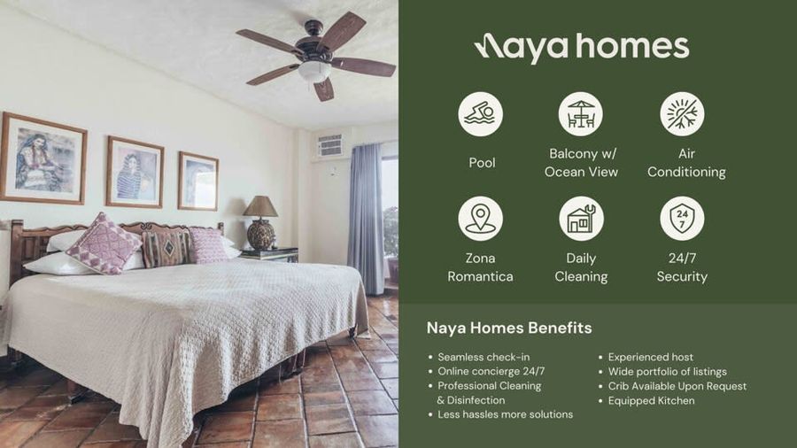 FROM DECEMBER 2024 TO MARCH 2025 CHECK OUTS WILL BE ON SATURDAYS ONLY. Spend your holidays in this two-bedroom unit right in front of the beach in the heart of Zona Romantica, the most sought-after spot in Puerto Vallarta: • Two bedrooms with 1 King and 2 twin beds • Private balcony with a fantastic view of Playa de los Muertos beach • Daily cleaning, excluding Sundays • A/C in the unit • Beachfront building in a prime location (Zona Romantica) • Rooftop heated swimming pool, which overlooks the beach • 24/7 security in the lobby Escape to paradise and enjoy the ultimate beachfront getaway in the heart of Zona Romantica, Puerto Vallarta's most coveted location. Immerse yourself in the luxurious amenities of this two-bedroom unit with breathtaking ocean views and a private balcony overlooking the stunning Playa de los Muertos beach. Relax and unwind in the comfort of your fully air-conditioned unit, which has a plush king-size bed and two cozy twin-size beds to accommodate up to four guests. You'll enjoy daily cleaning service (excluding Sundays), ensuring a stress-free stay with nothing to worry about. Indulge in the rooftop heated swimming pool, which offers a panoramic view of the beach, providing the perfect backdrop for soaking up the sun and taking a refreshing dip. You'll also appreciate the added peace of mind of 24/7 security in the lobby, making your stay safe and secure. Take advantage of this incredible opportunity to experience the ultimate beach vacation in Puerto Vallarta. Book your stay today and discover why this beachfront unit is the perfect spot for your next holiday getaway. Naya is dedicated to ensuring your stay is smooth and comfortable. Days before the arrival, one of our happiness agents will reach out to you to coordinate the key delivery. Please feel free to reach us anytime if you have issues or need any recommendations. Welcome to Old Town, also commonly known as the “Romantic Zone” (Zona Romantica). This neighborhood is famous for its authentic Mexican architecture, stunning sea views and bustling LGBTQ+ nightlife. This neighborhood is perfectly situated near Puerto Vallarta’s most popular beaches, Playa Olas Atlas and Playa Los Muertos, making it the perfect spot to lounge by the beach during the day and explore Puerto Vallarta’s bar and restaurant scene by night. Zona Romantica is a highly walkable area, where you can access the beach and the restaurant and nightlife safely at night. Puerto Vallarta is well connected by Uber and Taxi’s (negotiate!). Important: Potential street noise from 8am to 8pm 1. The property and the specific unit in the reservation shall not be used by more than the number of people or pets listed in the reservation. All guests will have to register with Naya Homes before their arrival, and additional guests may incur additional costs or the cancelation of the reservation, without a refund, according to Naya Homes cancellation policies. Guests outside the reservation details may not be permitted according to building rules. 2. By booking with Naya Homes, regardless of the platform used, guests agree to provide all necessary check-in information, including but not limited to copies of valid identification (such as a driver's license or passport), full names and ages of all guests, email addresses, and contact phone numbers. Guests will also complete any required admissions forms and documentation. Failure or refusal to provide the requested information and completion of the admissions forms may result in the immediate cancellation of the reservation without any refund. 3. All guests must honor the peace and privacy of their neighbors, refrain from participating in any unlawful activities, and adhere to the building regulations diligently. Non-compliance may result in the termination of your reservation without refund or financial penalties, as stipulated by either the building management, the host or Naya Homes. 4. Please respect the tranquility of our community by adhering to quiet hours from 10 PM to 8 AM. Non-compliance may result in the termination of your reservation without refund or a financial penalty added to your reservation costs. 5. No parties or gatherings of any kind are permitted. Non-compliance may result in the termination of your reservation without refund or a financial penalty added to your reservation costs. 6. Pets are not allowed unless expressly noted in your reservation. If you bring a pet to a property that does not allow pets, your reservation may be immediately canceled without a refund. For units where pets are specifically allowed, an additional special Pet Cleaning fee and a standard cleaning fee will be charged on top of the reservation if you bring a pet. 7. No smoking is permitted anywhere on the premises or in the building's common areas. A fine will be charged to the reservation if this is not respected. Casago - Puerto Vallarta has engaged VacayHome to ensure this listing contains all the information you need and that it is easy for you to book via search engines & online channels. VacayHome is connected directly to the property management system used by Casago - Puerto Vallarta which ensures that availability & rates are up-to-date & accurate. When you book, VacayHome processes payment on behalf of Casago - Puerto Vallarta and a charge will appear on your statement as "VacayHome". VacayHome will send you a confirmation e-mail that contains all the information you need to prepare for your vacation including arrival instructions. VacayHome has a 24 x 7 team to assist you with any questions or concerns you may have prior to arrival. To access VacayHome, obtain the customer support telephone number or read FAQs, please click on the links at the bottom of this page.
