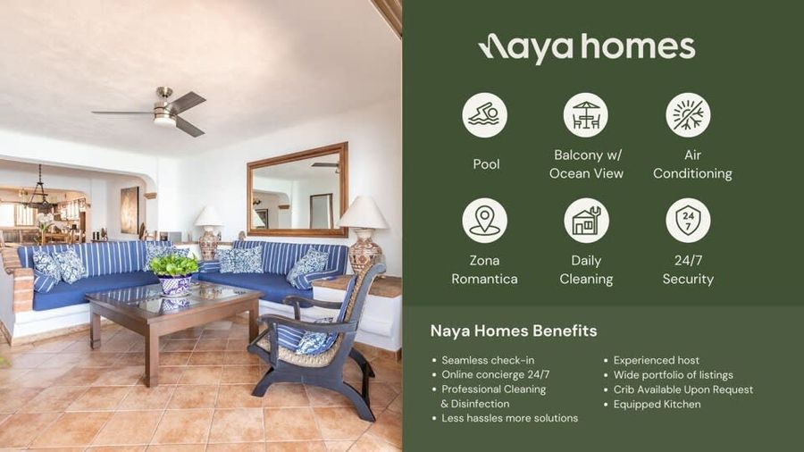 FROM DECEMBER 2024 TO MARCH 2025 CHECK OUTS WILL BE ON SATURDAYS ONLY. Spend your holidays in this two-bedroom unit right in front of the beach in the heart of Zona Romantica, the most sought-after spot in Puerto Vallarta: • Two bedrooms with 1 King and 2 twin beds • Private balcony with a fantastic view of Playa de los Muertos beach • Daily cleaning, excluding Sundays • A/C in the unit • Beachfront building in a prime location (Zona Romantica) • Rooftop heated swimming pool, which overlooks the beach • 24/7 security in the lobby Escape to paradise and enjoy the ultimate beachfront getaway in the heart of Zona Romantica, Puerto Vallarta's most coveted location. Immerse yourself in the luxurious amenities of this two-bedroom unit with breathtaking ocean views and a private balcony overlooking the stunning Playa de los Muertos beach. Relax and unwind in the comfort of your fully air-conditioned unit, which has a plush king-size bed and two cozy twin-size beds to accommodate up to four guests. You'll enjoy daily cleaning service (excluding Sundays), ensuring a stress-free stay with nothing to worry about. Indulge in the rooftop heated swimming pool, which offers a panoramic view of the beach, providing the perfect backdrop for soaking up the sun and taking a refreshing dip. You'll also appreciate the added peace of mind of 24/7 security in the lobby, making your stay safe and secure. Take advantage of this incredible opportunity to experience the ultimate beach vacation in Puerto Vallarta. Book your stay today and discover why this beachfront unit is the perfect spot for your next holiday getaway. Naya is dedicated to ensuring your stay is smooth and comfortable. Days before the arrival, one of our happiness agents will reach out to you to coordinate the key delivery. Please feel free to reach us anytime if you have issues or need any recommendations. Welcome to Old Town, also commonly known as the “Romantic Zone” (Zona Romantica). This neighborhood is famous for its authentic Mexican architecture, stunning sea views and bustling LGBTQ+ nightlife. This neighborhood is perfectly situated near Puerto Vallarta’s most popular beaches, Playa Olas Atlas and Playa Los Muertos, making it the perfect spot to lounge by the beach during the day and explore Puerto Vallarta’s bar and restaurant scene by night. Zona Romantica is a highly walkable area, where you can access the beach and the restaurant and nightlife safely at night. Puerto Vallarta is well connected by Uber and Taxi’s (negotiate!). Important: Potential street noise from 8am to 8pm. 1. The property and the specific unit in the reservation shall not be used by more than the number of people or pets listed in the reservation. All guests will have to register with Naya Homes before their arrival, and additional guests may incur additional costs or the cancelation of the reservation, without a refund, according to Naya Homes cancellation policies. Guests outside the reservation details may not be permitted according to building rules. 2. By booking with Naya Homes, regardless of the platform used, guests agree to provide all necessary check-in information, including but not limited to copies of valid identification (such as a driver's license or passport), full names and ages of all guests, email addresses, and contact phone numbers. Guests will also complete any required admissions forms and documentation. Failure or refusal to provide the requested information and completion of the admissions forms may result in the immediate cancellation of the reservation without any refund. 3. All guests must honor the peace and privacy of their neighbors, refrain from participating in any unlawful activities, and adhere to the building regulations diligently. Non-compliance may result in the termination of your reservation without refund or financial penalties, as stipulated by either the building management, the host or Naya Homes. 4. Please respect the tranquility of our community by adhering to quiet hours from 10 PM to 8 AM. Non-compliance may result in the termination of your reservation without refund or a financial penalty added to your reservation costs. 5. No parties or gatherings of any kind are permitted. Non-compliance may result in the termination of your reservation without refund or a financial penalty added to your reservation costs. 6. Pets are not allowed unless expressly noted in your reservation. If you bring a pet to a property that does not allow pets, your reservation may be immediately canceled without a refund. For units where pets are specifically allowed, an additional special Pet Cleaning fee and a standard cleaning fee will be charged on top of the reservation if you bring a pet. 7. No smoking is permitted anywhere on the premises or in the building's common areas. A fine will be charged to the reservation if this is not respected. Casago - Puerto Vallarta has engaged VacayHome to ensure this listing contains all the information you need and that it is easy for you to book via search engines & online channels. VacayHome is connected directly to the property management system used by Casago - Puerto Vallarta which ensures that availability & rates are up-to-date & accurate. When you book, VacayHome processes payment on behalf of Casago - Puerto Vallarta and a charge will appear on your statement as "VacayHome". VacayHome will send you a confirmation e-mail that contains all the information you need to prepare for your vacation including arrival instructions. VacayHome has a 24 x 7 team to assist you with any questions or concerns you may have prior to arrival. To access VacayHome, obtain the customer support telephone number or read FAQs, please click on the links at the bottom of this page.