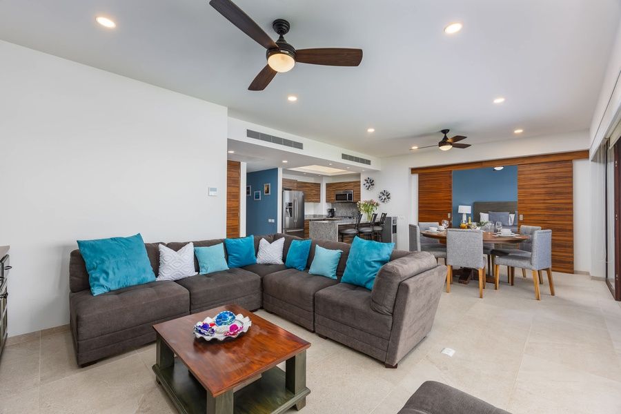 Este departamento de dos recámaras y dos baños completos, será el lugar ideal para que tú y tu familia o grupo tengan la relajación que buscan, en su tiempo de vacaciones. Disfrutarán de su equipamiento, tal como cocina completamente equipada, con refrigerador, estufa de gas, horno, microondas, lavaplatos, sink, cafetera, licuadora, tostador, etc, asà como todo lo necesario para servir en platos, vasos, cubiertos, ollas, sartenes, etc.