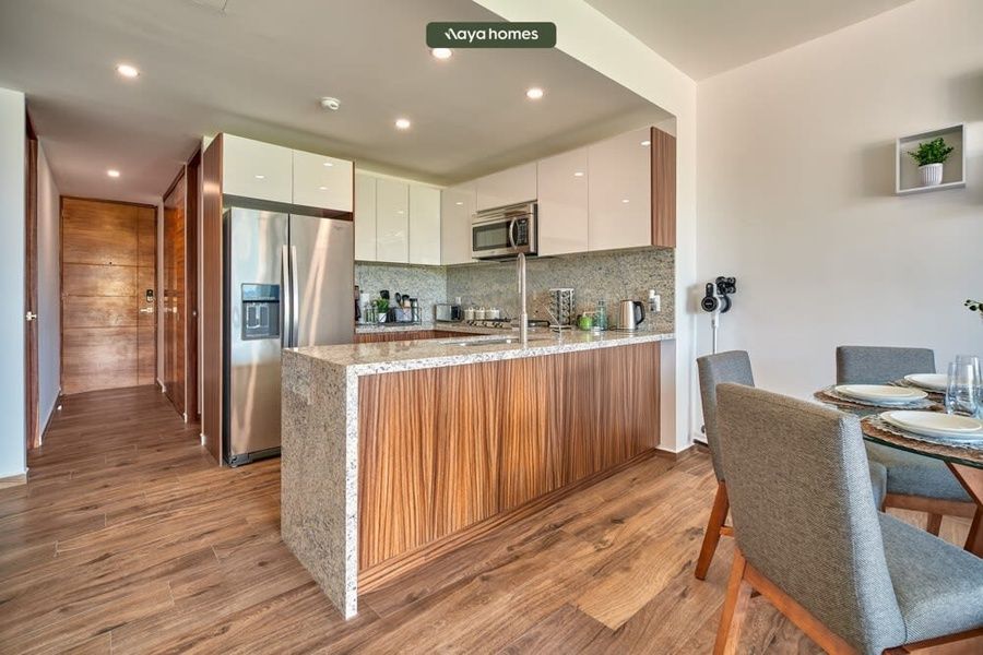 Fantastic 2-bedroom apartment in Versalles, Puerto Vallarta’s most up-and-coming neighborhoods: • King bed and two single beds • Infinity pool overlooking PV marina and city skyline • Extraordinary rooftop with BBQ area and outdoor lounge area • Minutes away from the gastronomic corridor • Fully equipped fitness center • A/C in all rooms • 24/7 Security with controlled access Welcome to a fantastic 2-bedroom apartment located in Versalles, one of Puerto Vallarta’s rapidly blossoming neighborhoods. This elegant dwelling provides a king bed and two single beds, ensuring a comfortable stay for all guests. Enjoy the convenience of having A/C in all rooms, ensuring your stay is as comfortable and hassle-free as possible. The building boasts an extraordinary rooftop garden and entertainment area, complete with a heated pool, gym, and a spacious lounge area. A covered area with tables, a bar, and grill further enhance your leisure and entertainment options during your stay. Location and Amenities Nestled in Versalles, experience a delightful blend of traditional Mexican charm and modern convenience. The building provides an array of top-tier amenities, including an infinity pool with a stunning view of the PV marina and city skyline, a rooftop with a BBQ area and outdoor lounge, 24/7 security with controlled access, and a fully-equipped fitness center. Additional conveniences include a large lobby, elevator, a storage locker for each unit, and optional underground parking spaces available for purchase. Versalles is just minutes away from the gastronomic corridor, offering a plethora of dining options to satisfy all palates. The neighborhood allows you to immerse yourself in a coastal paradise, with pristine beaches and breathtaking sunsets merely moments away. Enjoy a wealth of amenities, including excellent restaurants, shopping centers, and a warm, welcoming community. Why Stay Here? Choosing this apartment in Versalles means not only enjoying luxurious accommodations but also immersing yourself in the local culture and modern conveniences of one of Puerto Vallarta's most up-and-coming neighborhoods. Culinary Adventures: Versalles is renowned for its burgeoning culinary scene, offering a variety of dining options, from authentic street food to international cuisine in upscale restaurants. Artistic & Cultural Exploration: Potential access to local art galleries, workshops, and cultural events will enrich your stay with the vibrant culture of the area. Shopping Excursions: Explore various shops offering local crafts, art, and souvenirs, and discover small boutiques and markets for a unique shopping experience. Engaging Activities: From culinary tours and cooking classes to exploring the architectural and cultural aspects of Versalles through walking tours, your stay will be filled with exciting activities. Vibrant Nightlife: Experience Puerto Vallarta's lively nightlife by exploring local bars, clubs, and lounges in the vicinity. Community Events: Engage with the local community through events, farmers' markets, or festivals that might be occurring during your visit. This apartment is not just a place to stay but a gateway to explore and immerse in the vibrant life, culture, and warmth of Versalles, Puerto Vallarta. Book now and make this splendid apartment your base as you explore the wonders of this extraordinary locale! Naya is dedicated to ensuring your stay is smooth and comfortable. On your arrival, we will send you the code for the smart lock so you can access the unit. Please feel free to reach us anytime if you have issues or need any recommendations. Welcome to the vibrant Versalles neighborhood in Puerto Vallarta, where your dream lifestyle awaits. Experience the perfect fusion of traditional Mexican charm and modern convenience. Enjoy a coastal paradise just moments away from pristine beaches and breathtaking sunsets. With a wealth of amenities, including excellent restaurants, shopping centers, and a welcoming community, Versalles is the place to call home. Embrace the magic of Puerto Vallarta's Versalles neighborhood and create a life filled with endless beauty and unforgettable moments. Just a 10-minute drive to the airport and a short walk to the beach, this area is the perfect choice; and for longer trips you can easily take a ride through Uber or other ride hailing apps Loss of access card will incur a replacement fee of $50 USD 1. The property and the specific unit in the reservation shall not be used by more than the number of people or pets listed in the reservation.All guests will have to register with Naya Homes before their arrival, and additional guests may incur additional costs or the cancelation of the reservation, without a refund, according to Naya Homes cancellation policies. Guests outside the reservation details may not be permitted according to building rules. Casago - Puerto Vallarta has engaged VacayHome to ensure this listing contains all the information you need and that it is easy for you to book via search engines & online channels. VacayHome is connected directly to the property management system used by Casago - Puerto Vallarta which ensures that availability & rates are up-to-date & accurate. When you book, VacayHome processes payment on behalf of Casago - Puerto Vallarta and a charge will appear on your statement as "VacayHome". VacayHome will send you a confirmation e-mail that contains all the information you need to prepare for your vacation including arrival instructions. VacayHome has a 24 x 7 team to assist you with any questions or concerns you may have prior to arrival. To access VacayHome, obtain the customer support telephone number or read FAQs, please click on the links at the bottom of this page.