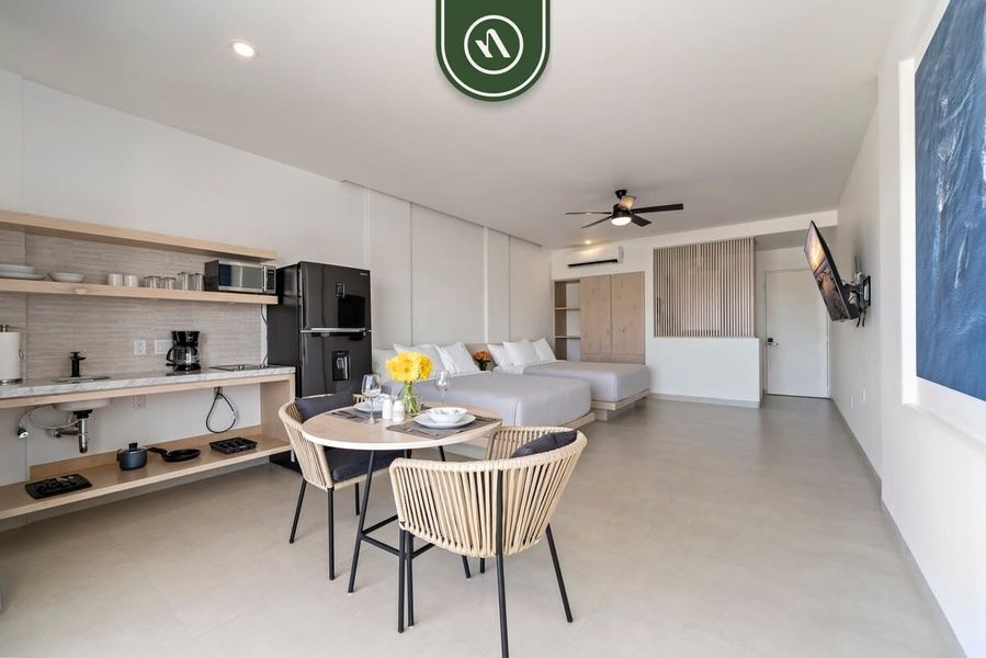 Amazing and brand-new partial sea view two studios making a suite with: • One king-size bed and two queen-size-beds in two separate studios becoming one • Private terrace with mountain and partial ocean views • Amazing roof terrace with pool, sun loungers, and outstanding views • Walking distance to the marina and Cabo San Lucas downtown • Air conditioning, kitchenette, and smart TV in every room • Parking lot available • 24/7 security cameras Welcome to your serene oasis in the heart of Cabo San Lucas at 605 Tower, Downtown Cabo! This stunning, brand-new, lockable studio apartment offers an unforgettable stay in one of Mexico's most vibrant cities. Nestled in the vibrant city center, our brand-new lockable studio offers two plush queen beds and one king bed, ensuring a comfortable stay for up to six guests. Step out onto your private terrace and take in the breathtaking mountain and bay views as you enjoy your morning coffee or evening cocktail. With air conditioning in every room and a safe deposit box, your comfort and safety are our top priority. Amenities and Location: The 605 Tower is more than just a building; it's a strategically located haven for you. Immerse yourself in the excitement of the beaches just 6 minutes away, or the vibrant nightlife just four minutes from your front door. When hunger strikes, you can enjoy culinary delights at the various restaurants just a two-minute walk away. Despite our central location, peace, and serenity reign at 605 Tower. Enjoy a peaceful sanctuary away from the hustle and bustle of the city, offering a tranquil environment in which to relax. Enjoy the best of both worlds – immerse yourself in the attractions of Cabo San Lucas and relax in a tranquil atmosphere. Our building has a rooftop terrace with 360° views and sun loungers where you can bask in the glorious Mexican sun. Dive into the rooftop pool, where the skyline and sea merge into one breathtaking view. An elevator, air conditioning, private parking, and free Wi-Fi ensure your stay is as smooth as it is spectacular. Medano Beach is within easy reach. Each of the air-conditioned units at the 605 Tower features modern amenities such as a coffee maker, microwave, kitchenware, flat-screen TV, and a private bathroom in each room. Here you will find comfort, convenience, and a welcoming atmosphere that will make you feel at home. Naya Homes is a professional property manager that delivers top-notch accommodation experiences with the following: • Online concierge 24/7 • Professional Cleaning and Disinfection • Wide portfolio of listings • Less hassles, more solutions Naya is dedicated to ensuring your stay is smooth and comfortable. On your arrival, we will send you the code for the smart lock so you can access the unit. Please feel free to reach us anytime if you have issues or need any recommendations. The Lienzo Charro neighborhood in Cabo San Lucas offers a unique Mexican experience, combining traditional culture with modern amenities. The neighborhood is centrally located, close to several key streets such as 16 de Septiembre, 20 de Noviembre, Av. de los Charros, and Blvd. Lazaro Cardenas, making it easily accessible​​. Guests staying in the Lienzo Charro neighborhood can enjoy: - Cultural Experiences: Witness traditional Mexican rodeo events at the lienzo charro, offering a unique glimpse into Mexico’s vibrant equestrian culture. - Local Dining: For culinary experiences, the area boasts authentic Mexican restaurants such as Casa Martin, located right in Lienzo Charro, where guests can savor gourmet Mexican and international cuisine in a fine-dining setting​​. - Exploring Nearby Attractions: Being centrally located, guests can easily access the main attractions of Cabo San Lucas, including beaches, shopping centers, and other tourist spots. - Outdoor Activities: The neighborhood's proximity to both the city and natural landscapes allows for a variety of outdoor activities, from city tours to exploring the natural beauty of the Baja California Sur region. Staying in the Lienzo Charro neighborhood offers a blend of cultural immersion, culinary delights, and convenient access to the best of Cabo San Lucas, making it an excellent choice for travelers seeking an authentic Mexican experience. Arriving and navigating around the Lienzo Charro neighborhood in Cabo San Lucas is both straightforward and convenient: Arriving at Cabo San Lucas: The nearest airport to the Lienzo Charro neighborhood is Los Cabos International Airport. Upon landing, you can opt for a taxi, rent a car, or use a shuttle service to reach the neighborhood. It's approximately a 45-minute drive from the airport to Lienzo Charro. Locating Lienzo Charro: The neighborhood is centrally located near several major streets, including 16 de Septiembre, 20 de Noviembre, Av. de los Charros, and Blvd. Lazaro Cardenas. These landmarks make it easy to navigate to Lienzo Charro​​. Casago - Los Cabos has engaged VacayHome to ensure this listing contains all the information you need and that it is easy for you to book via search engines & online channels. VacayHome is connected directly to the property management system used by Casago - Los Cabos which ensures that availability & rates are up-to-date & accurate. When you book, VacayHome processes payment on behalf of Casago - Los Cabos and a charge will appear on your statement as "VacayHome". VacayHome will send you a confirmation e-mail that contains all the information you need to prepare for your vacation including arrival instructions. VacayHome has a 24 x 7 team to assist you with any questions or concerns you may have prior to arrival. To access VacayHome, obtain the customer support telephone number or read FAQs, please click on the links at the bottom of this page.