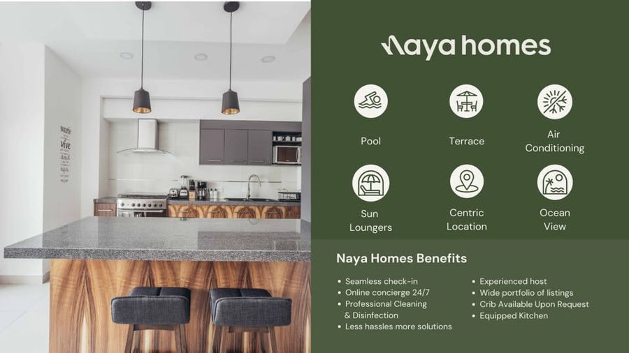Modern two bedroom 2 minutes from the perfect Bucerias beach, with spectacular sunset views and lawn chairs from building rooftop • Air Conditioning • 1 King•size bed, 2 Double Beds • Shared Pool and rooftop terrace • High•speed WiFi • 1st floor, pool facing. • 3 TVs with Cable • Smart locks; smart home system Spacious, two-bedroom, two-bathroom condo in the Bucerias area. The space is perfect for a family getaway, with a fully equipped kitchen, a private balcony overlooking the pool, and a cozy living room for movie nights. Enjoy the comforts of home while relaxing on Mexico's Pacific Coast with the unbelievable views of the bay from the building rooftop. Naya Homes is a professional property manager with the objective of delivering top-notch accommodation experiences with: • Online concierge 24/7 • Professional Cleaning and Disinfection • Wide portfolio of listings • Less hassles more solutions Naya is dedicated to ensuring your stay is smooth and comfortable. On your arrival, we will send you the code for the smart lock so you can access the unit. Please feel free to reach us anytime if you have issues or need any recommendations. Experience the perfect balance of relaxation and excitement in Bucerias, a charming town that's both tranquil and lively. With its safe, walkable streets and stunning stretch of beach with gentle waves, Bucerias is the ideal destination for those seeking a peaceful getaway. Indulge in the town's diverse dining options and immerse yourself in its friendly community, made up of both proud locals and international residents. Come see why Bucerias is the perfect place to call home, just 2 minutes from the tranquil beach with impressive sunsets of the bay. Bucerias is a charming, small beach town where almost all destinations are conveniently walkable. For locations further away, we suggest using ride-hailing services like Uber. Alternatively, you can arrange a pick-up with a local taxi. Pool closed 1. The property and the specific unit in the reservation shall not be used by more than the number of people or pets listed in the reservation. All guests will have to register with Naya Homes before their arrival, and additional guests may incur additional costs or the cancelation of the reservation, without a refund, according to Naya Homes cancellation policies. Guests outside the reservation details may not be permitted according to building rules. 2. By booking with Naya Homes, regardless of the platform used, guests agree to provide all necessary check-in information, including but not limited to copies of valid identification (such as a driver's license or passport), full names and ages of all guests, email addresses, and contact phone numbers. Guests will also complete any required admissions forms and documentation. Failure or refusal to provide the requested information and completion of the admissions forms may result in the immediate cancellation of the reservation without any refund. 3. All guests must honor the peace and privacy of their neighbors, refrain from participating in any unlawful activities, and adhere to the building regulations diligently. Non-compliance may result in the termination of your reservation without refund or financial penalties, as stipulated by either the building management, the host or Naya Homes. 4. Please respect the tranquility of our community by adhering to quiet hours from 10 PM to 8 AM. Non-compliance may result in the termination of your reservation without refund or a financial penalty added to your reservation costs. 5. No parties or gatherings of any kind are permitted. Non-compliance may result in the termination of your reservation without refund or a financial penalty added to your reservation costs. 6. Pets are not allowed unless expressly noted in your reservation. If you bring a pet to a property that does not allow pets, your reservation may be immediately canceled without a refund. For units where pets are specifically allowed, an additional special Pet Cleaning fee and a standard cleaning fee will be charged on top of the reservation if you bring a pet. 7. No smoking is permitted anywhere on the premises or in the building's common areas. A fine will be charged to the reservation if this is not respected. 8. You are liable for any property damage and agree to accept charges to your card on file should damage occur during your occupancy. 9. Check-in is at 3 pm or later, and Check-out is at 11 am or earlier unless noted in your reservation. If these times are not respected, there will be a fine charged to the reservation. 10. Rental rates include a reasonable usage of electricity for each night of the reservation length. Getting Around Bucerias is a charming, small beach town where almost all destinations are conveniently walkable. For locations further away, we suggest using ride-hailing services like Uber. Alternatively, you can arrange a pick-up with a local taxi. Casago - Puerto Vallarta has engaged VacayHome to ensure this listing contains all the information you need and that it is easy for you to book via search engines & online channels. VacayHome is connected directly to the property management system used by Casago - Puerto Vallarta which ensures that availability & rates are up-to-date & accurate. When you book, VacayHome processes payment on behalf of Casago - Puerto Vallarta and a charge will appear on your statement as "VacayHome". VacayHome will send you a confirmation e-mail that contains all the information you need to prepare for your vacation including arrival instructions. VacayHome has a 24 x 7 team to assist you with any questions or concerns you may have prior to arrival. To access VacayHome, obtain the customer support telephone number or read FAQs, please click on the links at the bottom of this page.