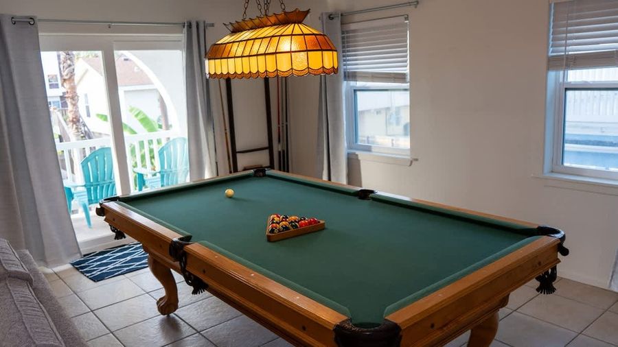 Super fun retro beach style home. Very large 3 levels, 3000+ sq feet. Less than 1 block to beach, 4 bedr/4 bath sleeps 17 Well stocked, spacious & classic for your next amazing family vacation or reunion. Large open fully equipped kitchen, lots of space + BBQ grill. - No Pool Multi level for extra privacy, sunken Tiki Bar, pool table. Walk to dozens of bars & restaurants - super convenient! Please read all house rules prior to booking About this Space: Look no further if you are wanting a true eclectic Island experience with a super fun/cool retro vibe! While this is not a brand new remodel, it has been thoughtfully furnished for a large family to gather all under one roof! 3 full levels to create unforgettable family memories while avoiding the “cookie cutter” Crate & Barrel boring decor that all looks the same :) Please note there is no pool here at this time Thank you so much for considering our Dolphin House! We hope you will enjoy our home. Please understand this is not a brand new remodel - it has character and some flaws & is not new. The backyard is closed at this time - unfortunately as we are redoing the pool this fall, we are sorry about this! Up to two pets are allowed for an additional fee - please inquire! AMENITIES 4 bedroom, 4 bath private home Multiple conversation areas where smaller groups can gather but open enough for the whole group to interact Separate semi private apartment with half kitchen on the 1st floor, opens to the backyard and pool. Five-minute walk to the beach at Access #9 “Blue Water” this property is on the east side of padre blvd so no need to cross the busy main drag Excellent location for eating and drinking Very close (1 block) to the Blue Marlin IGA super market with food, drinks, beach toys and more 3-minute walk to Ben’s Liquors for libations 10- minute walk to the entertainment district with all the bars like Luna fine dining, Tequilas, BOBs on the Bay, Driftwood, & Louies Backyard Very close restaurants include Grapevine Cafe for great breakfast or lunch, the Baked Bear for some awesome ice cream cookie sandwiches, and F&B for further fine dining We have “some” Chairs, beach towels, boogie boards, sand toys and a wagon to cart it all in available for your use (we can’t say exactly what will be there but guests are invited to use whatever they find - this stuff can disappear so we do NOT guarantee it - bring if you want a 100% guarantee 3 balconies 2nd floor south: Delight in the summer fireworks on weekends 2nd floor north: Relax and chat with friends or have your morning coffee outside overlooking the pool 3rd floor north: Enjoy the quiet of the private balcony off of the primary bedroom Super cool retro Sunken tiki bar with light-up counter Pool table Free wi-fi / internet Smart TVs throughout Outdoor shower for washing off after the beach Room-darkening curtains in every bedroom Washer/dryer Pet friendly - max 2 pets - please disclose & additional fee / requirements apply Gas grill (please bring your own LP tank that we do not provide) Stove and dishwasher on ground floor have been removed and they are not available There's a completely set up in fully equipped kitchen on the second level with a stove, dishwasher fridge, microwave it, etc. PARKING Space for max 4 vehicles in driveway, please do not park on side of road or you can be towed at your own expensive :( Please note a golf cart is included in this count. INTERIOR Themed bedrooms based on the best of SPI: The Shimmering Sea (primary on 3rd floor): the many and ever-changing shades of blue you see as you drive over the Causeway Sleeps 2 King bed Private bath with large tub, walk-in shower, double sinks Private balcony Recliner 55-inch smart TV Room-darkening curtains Large closet with small dresser Sunny Days (3rd floor guest): sky blues and sunshiney yellows to make you feel warm and smiley Sleeps 10 Perfect as “the kids’ room” Queen bed 2 twin over full bunks with trundles Private bath with tub/shower combo Desk/vanity 55-inch smart TV Room-darkening curtains Large walk-in closet with small dresser Sandy Dunes (2nd floor guest): neutral colors that almost make you feel the soft, white sand under your feet. South Padre Trips - Guesty has engaged VacayHome to ensure this listing contains all the information you need and that it is easy for you to book via search engines & online channels. VacayHome is connected directly to the property management system used by South Padre Trips - Guesty which ensures that availability & rates are up-to-date & accurate. When you book, VacayHome processes payment on behalf of South Padre Trips - Guesty and a charge will appear on your statement as "VacayHome". VacayHome will send you a confirmation e-mail that contains all the information you need to prepare for your vacation including arrival instructions. VacayHome has a 24 x 7 team to assist you with any questions or concerns you may have prior to arrival. To access VacayHome, obtain the customer support telephone number or read FAQs, please click on the links at the bottom of this page.